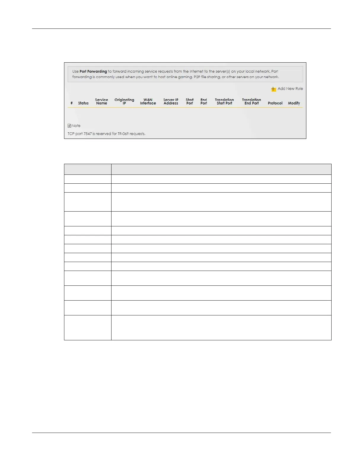 protocol to configure a port forwarding rule. Click Add New Rule in the Port Forwarding screen or the Edit