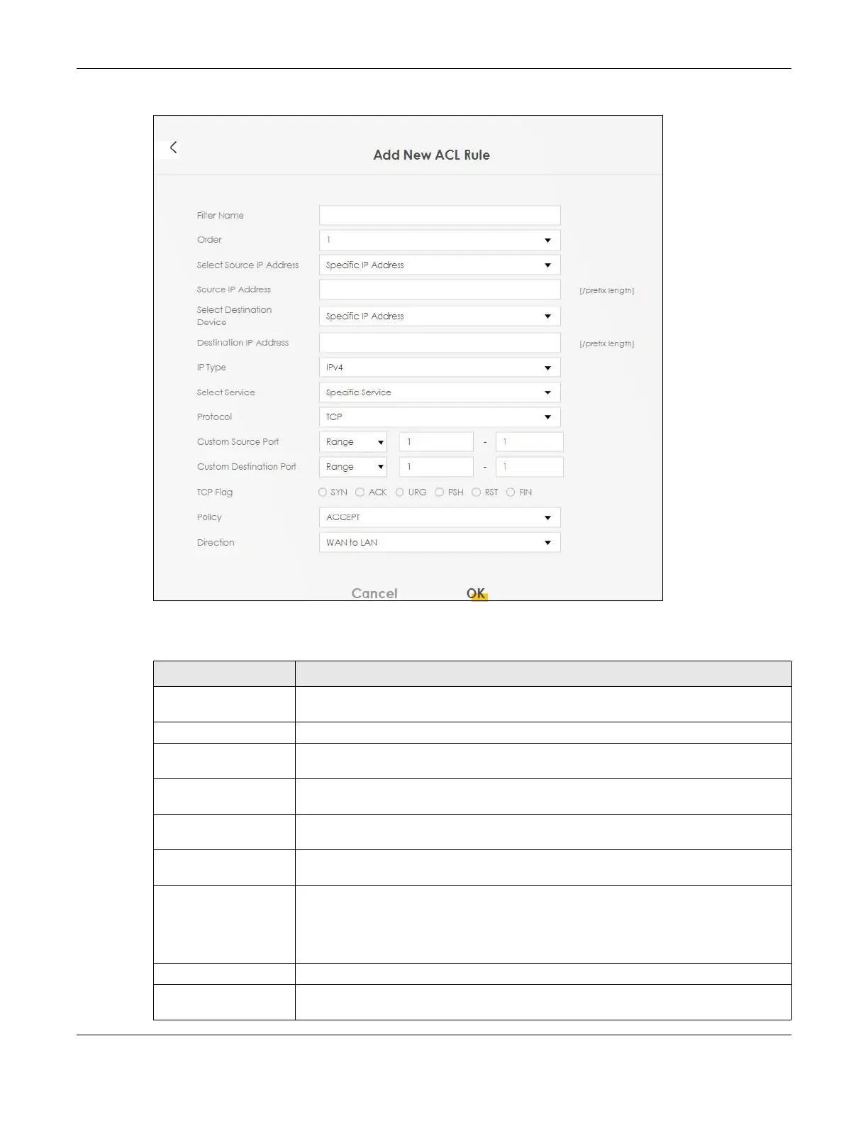 Table 74 Security > Firewall > Access Control > Add New ACL Rule