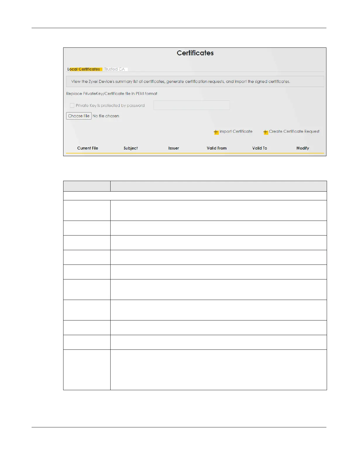 Import Certificate Click this button to save the certificate that you have enrolled from a certification authority