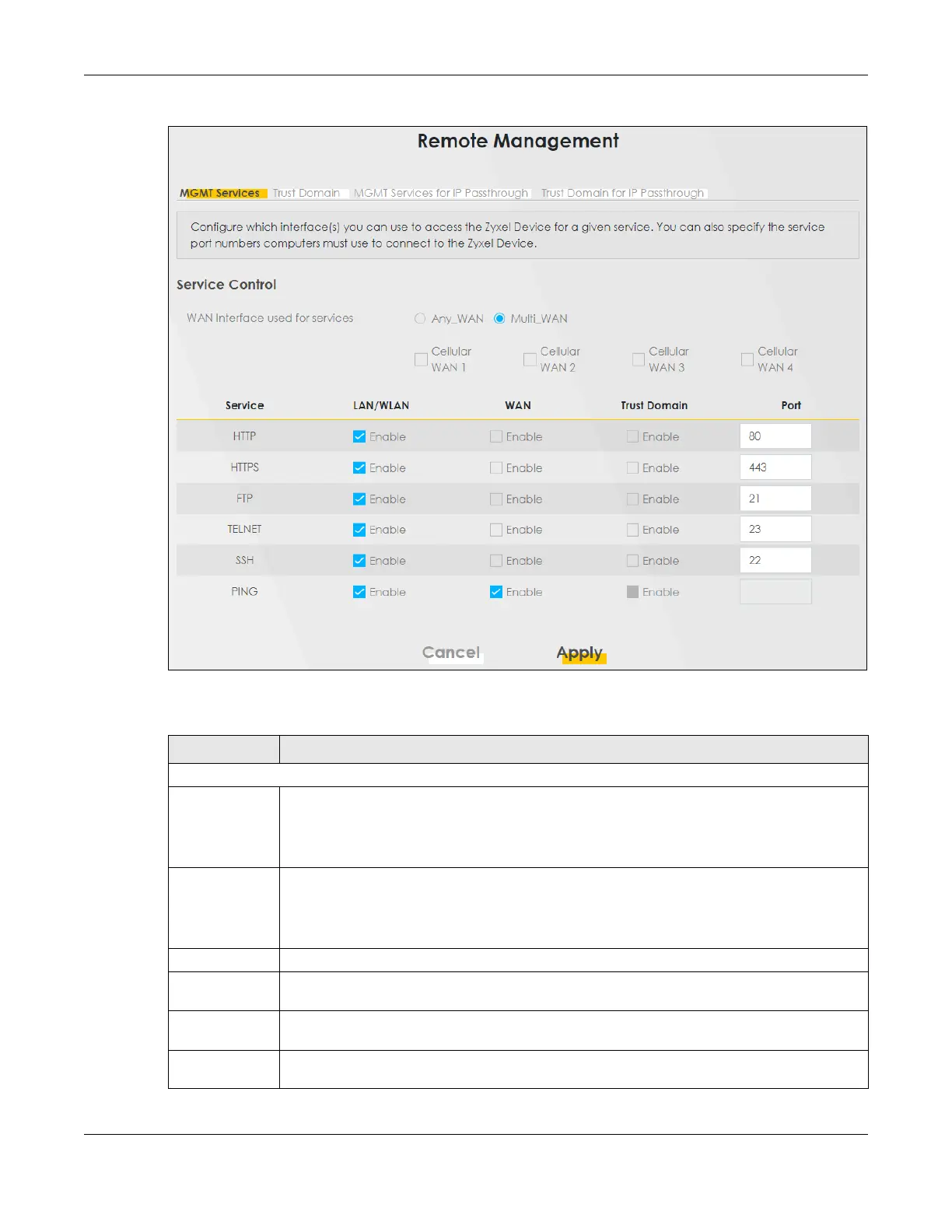 Table 96 Maintenance > Remote Management > MGMT Services