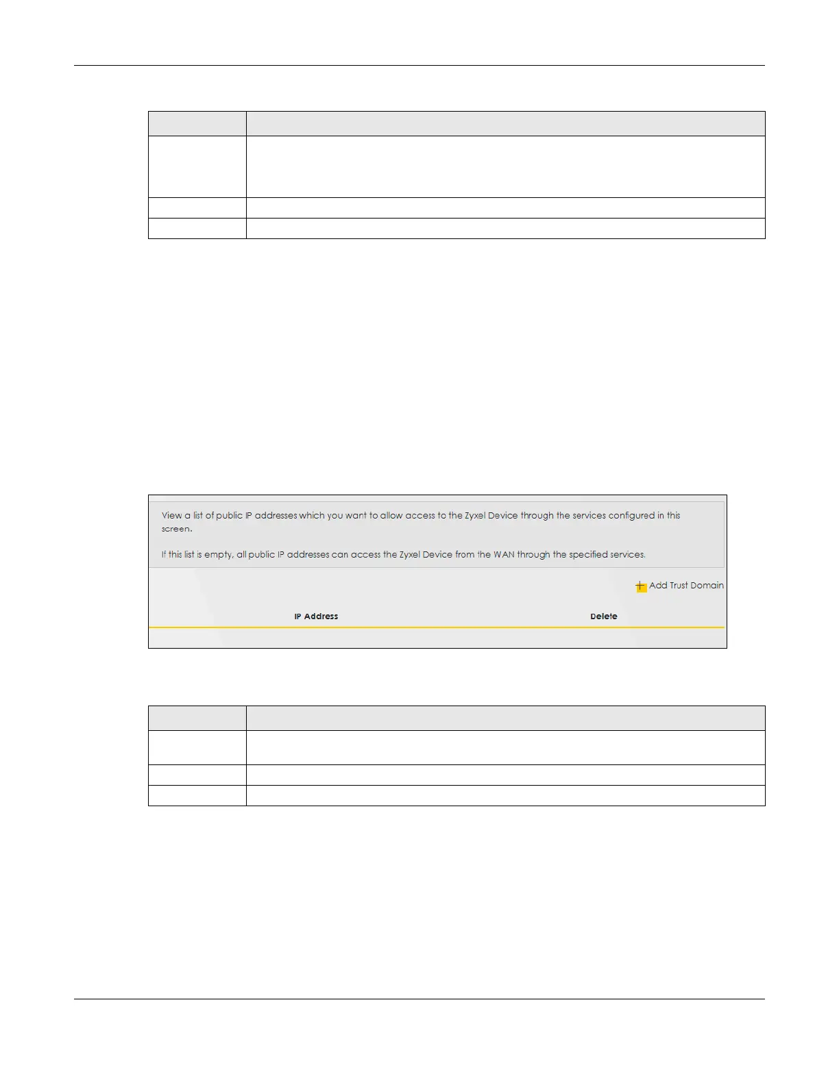 the trust domain list is empty, all public IP addresses can access the Zyxel Device from