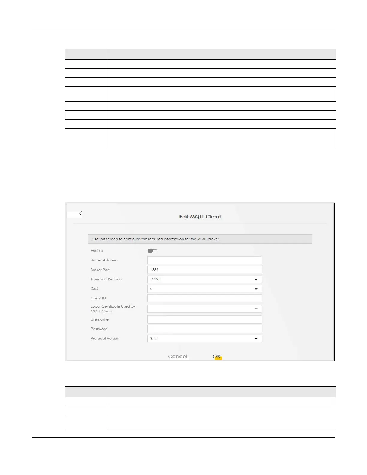 Broker Address Enter the URL of the MQTT broker. Make sure the broker is reachable from the Zyxel Device.