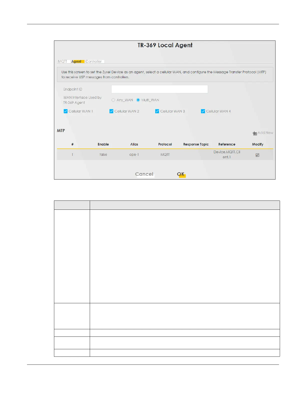 Endpoint ID This identifies the Zyxel Device acting as an agent.