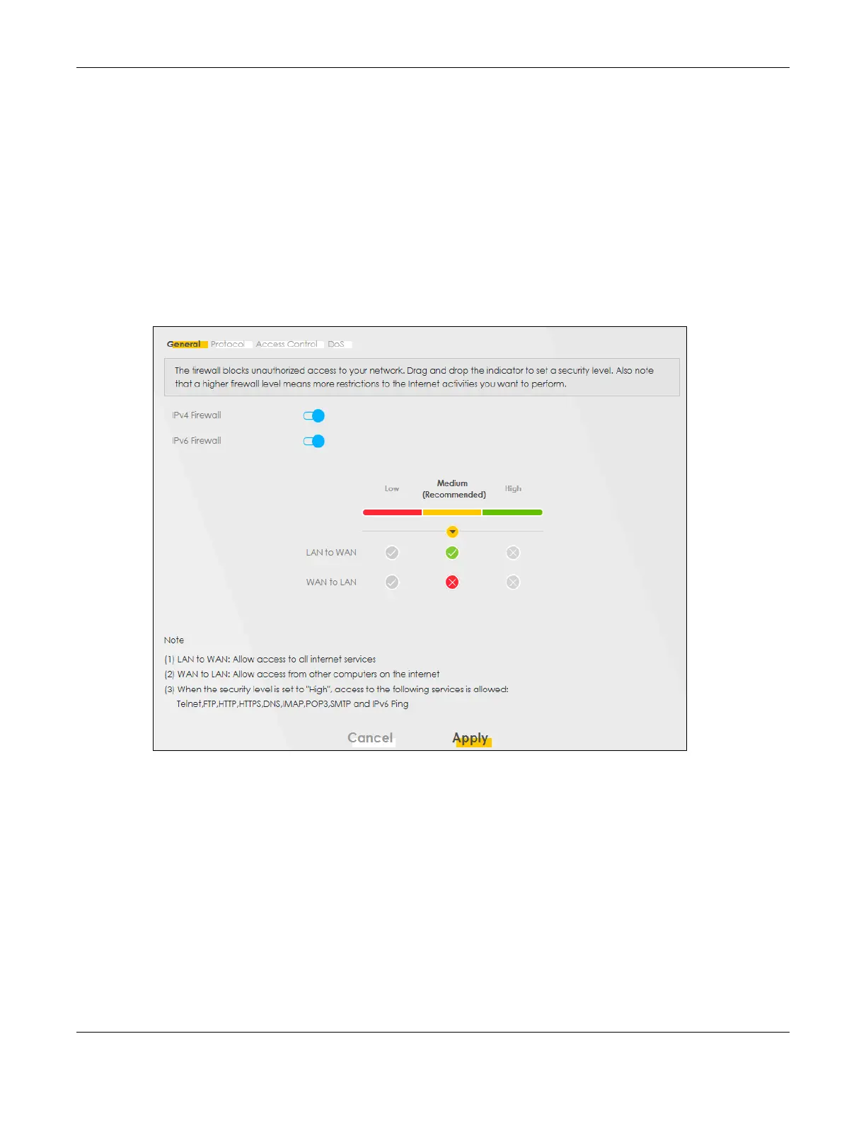 2 Select IPv4 Firewall/IPv6 Firewall to enable the firewall, and then click Apply.