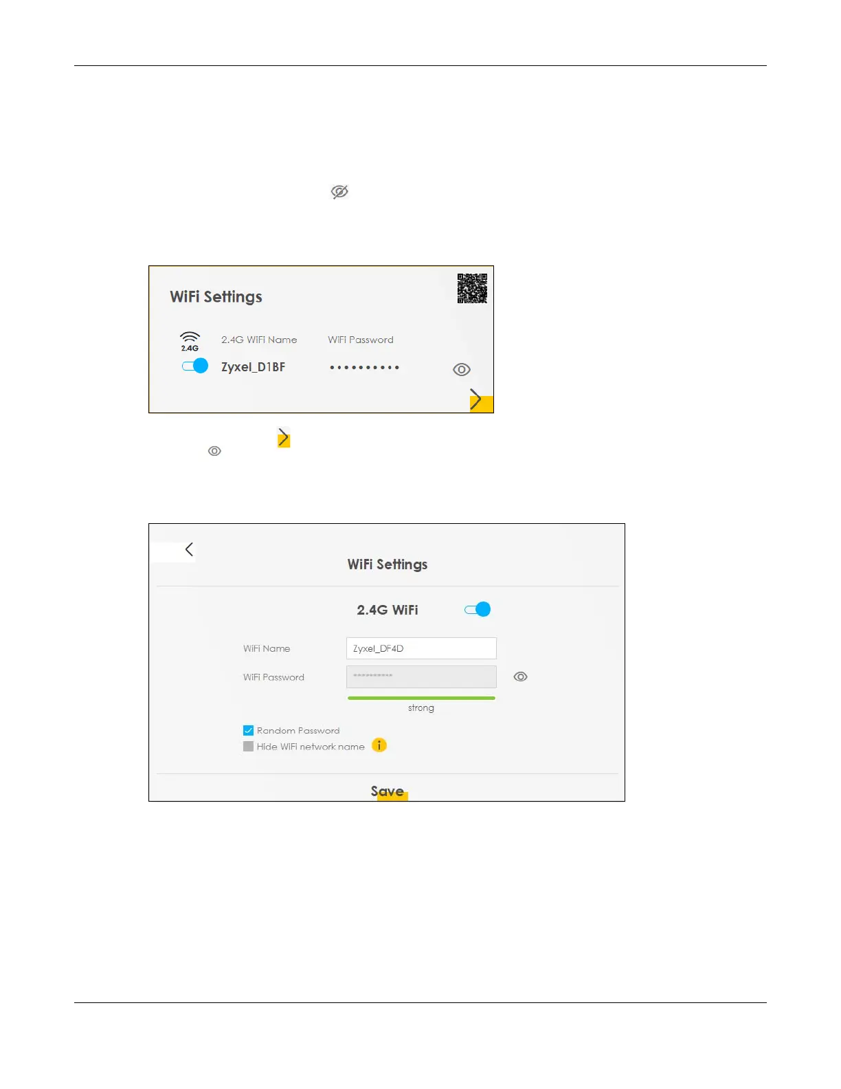 Click the Arrow icon ( ) to configure the SSIDs and/or passwords for your main WiFi networks. Click the