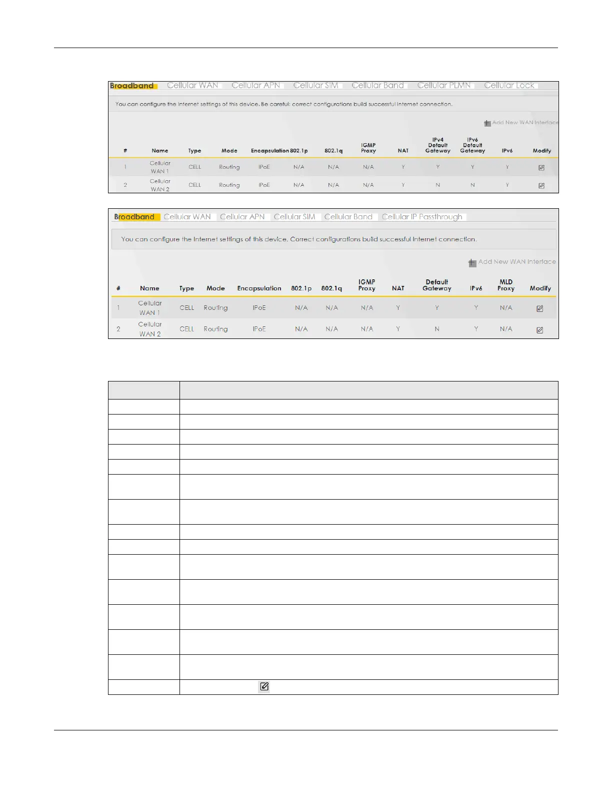Modify Click the Edit icon ( ) to configure the WAN connection.