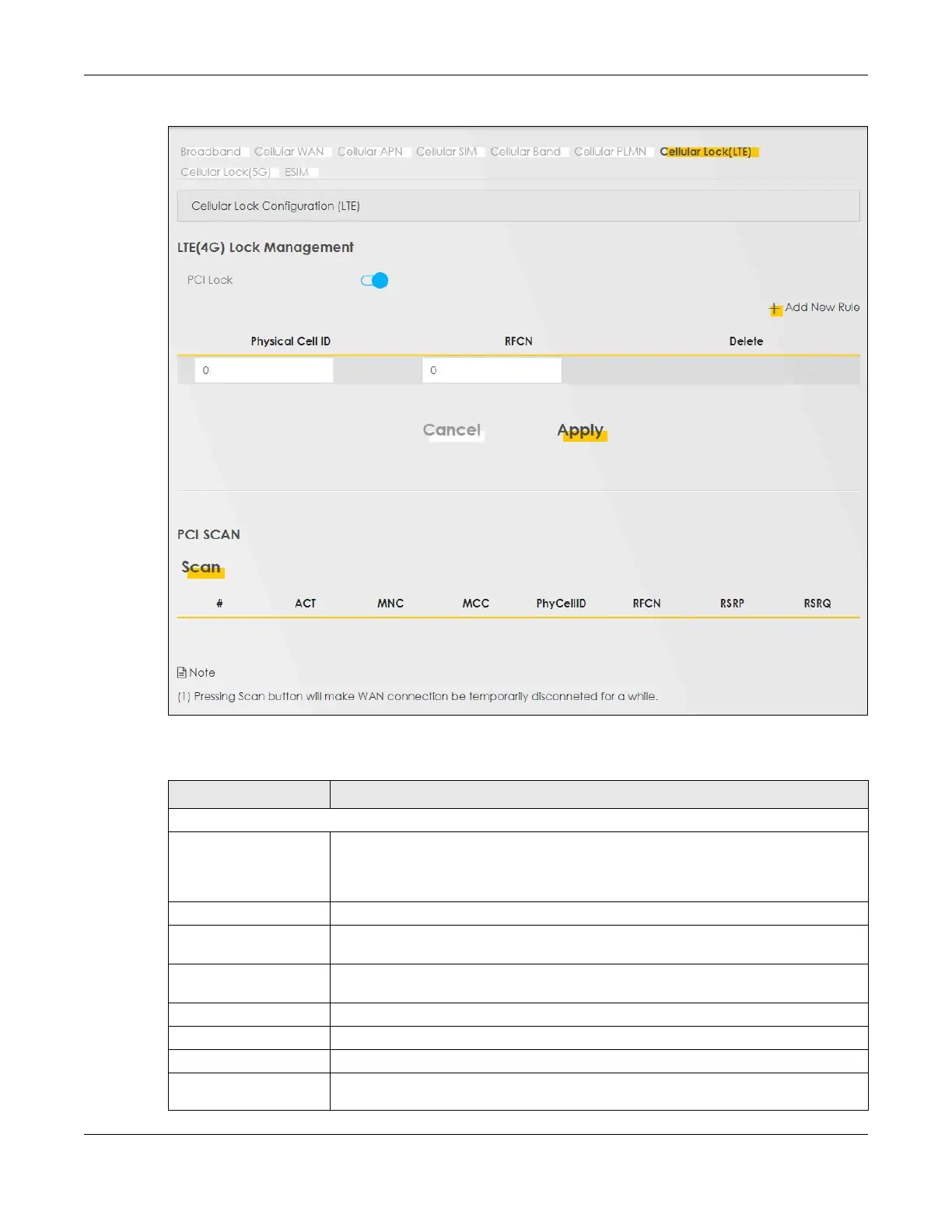 Table 27 Network Setting > Broadband > Cellular Lock (LTE)