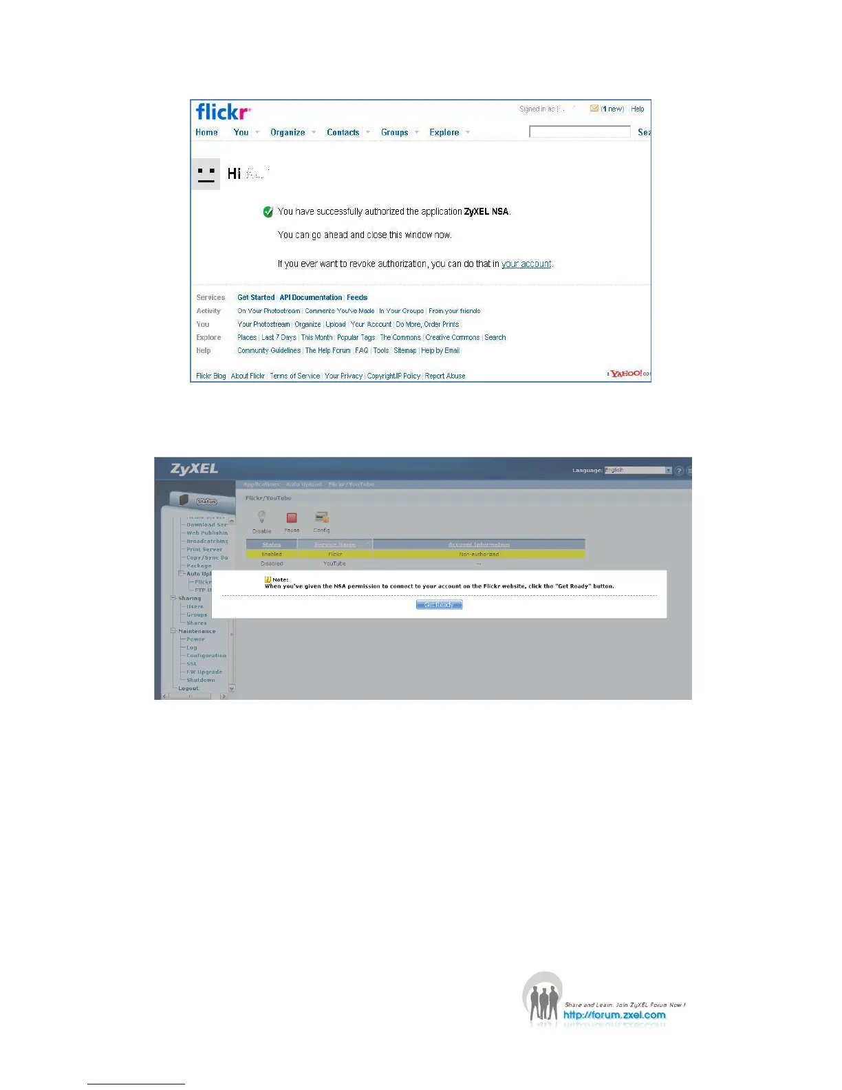 After allowing the agreement in Flickr page, please also press the “Get ready” button
