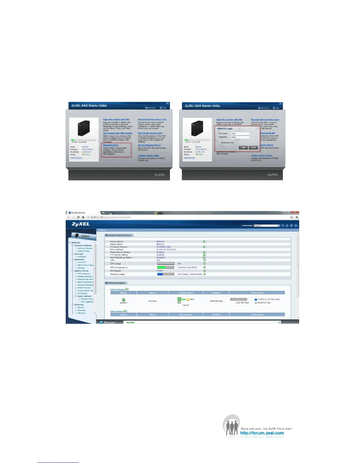 NSA310s GUI. Then the administrator can manage the device and change the