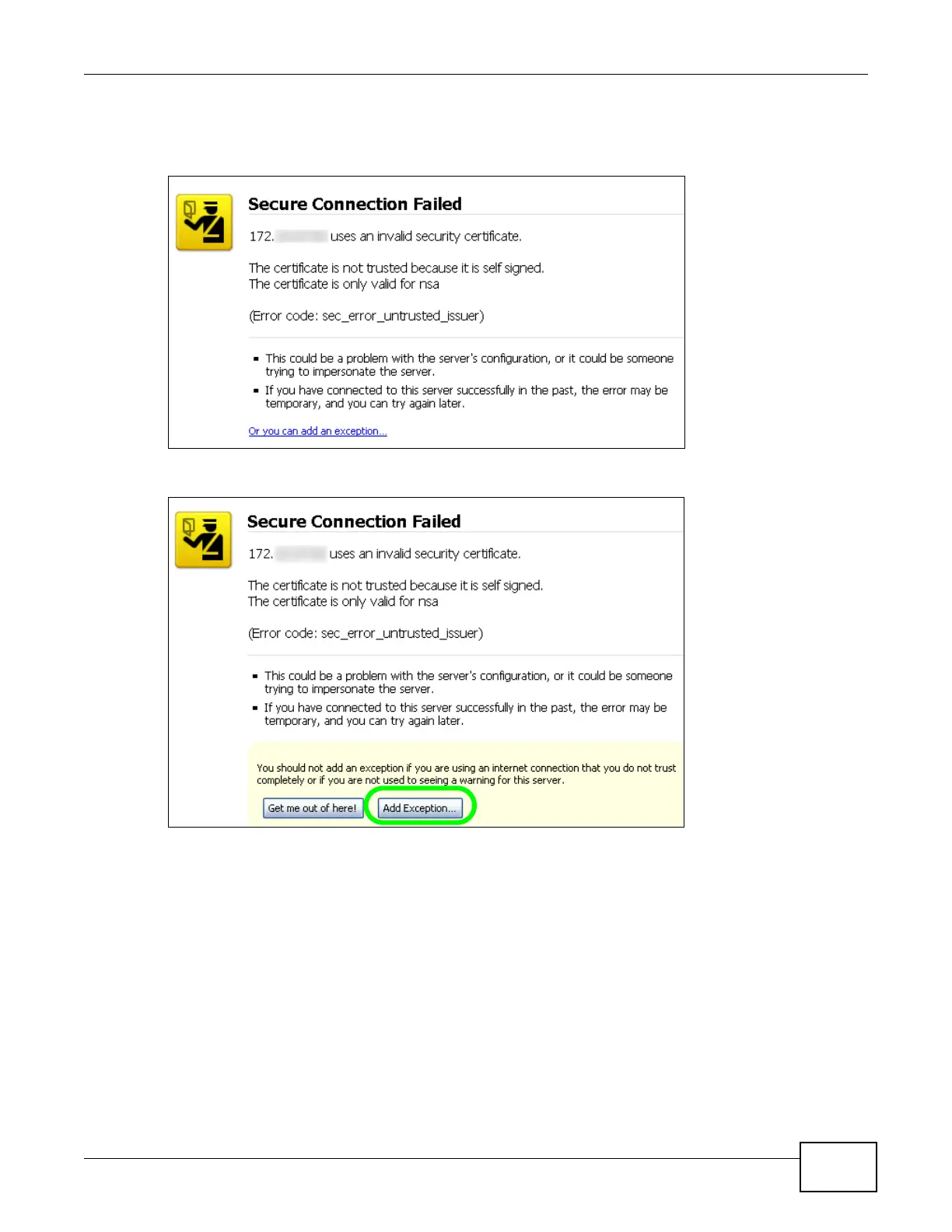 4 Click Add Exception.
