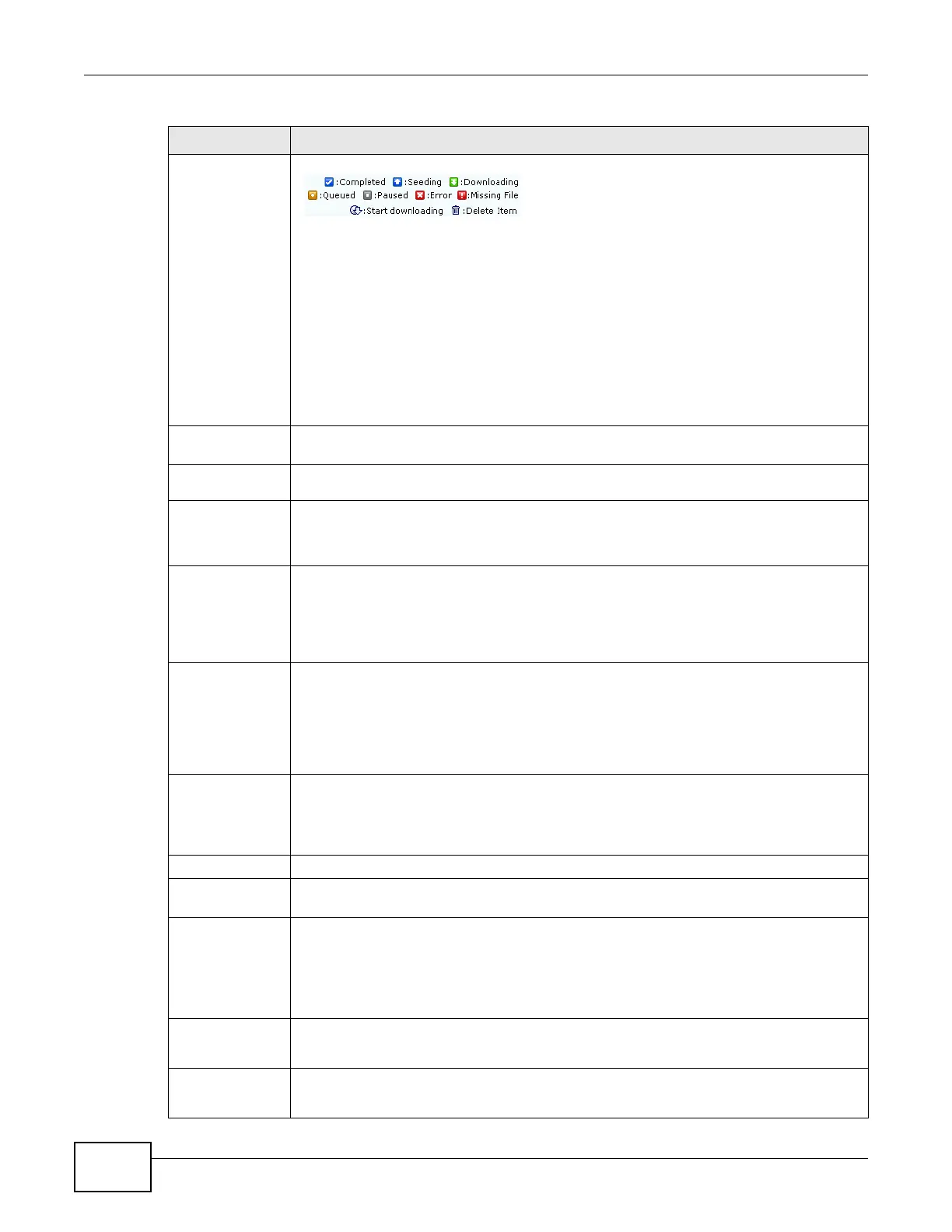 Status The following icons show the download’s status.