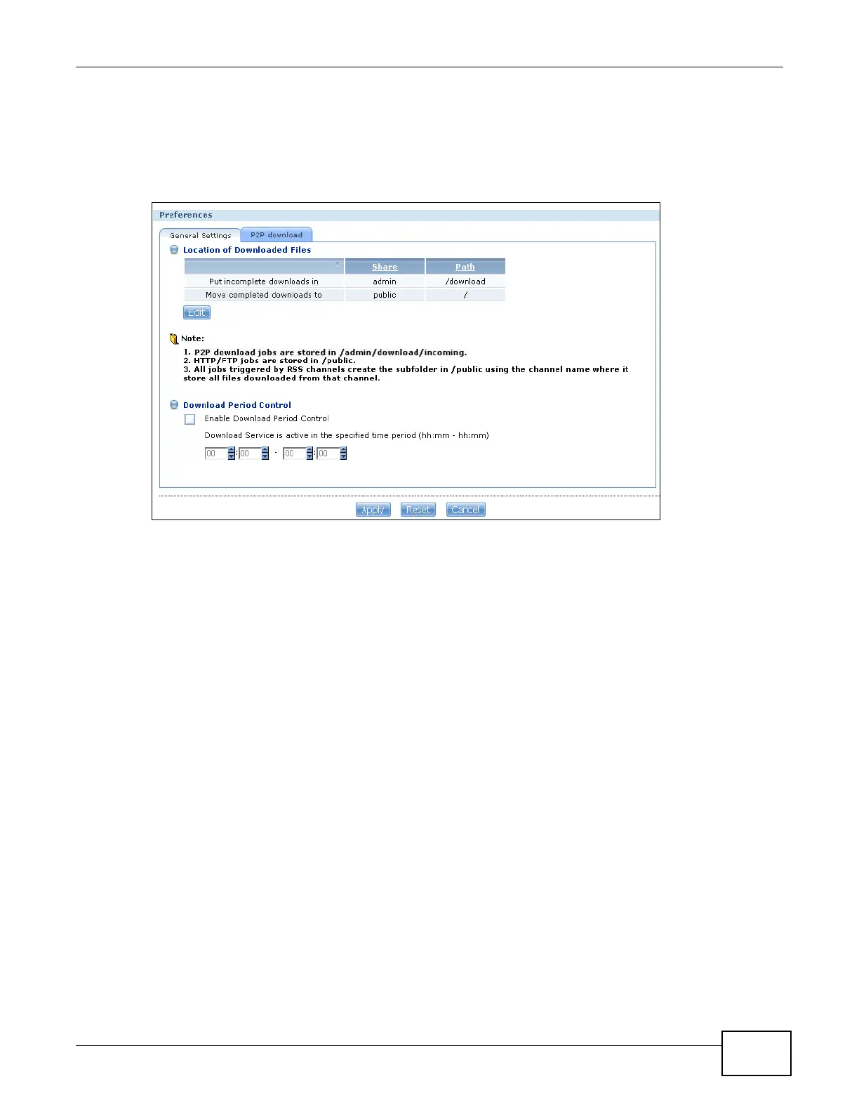 Figure 109 Applications > Download Service > Preferences > General Settings