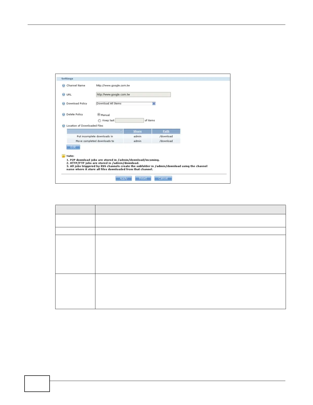similar Edit screen. Use the Edit Channel screen to change the download or delete policies.