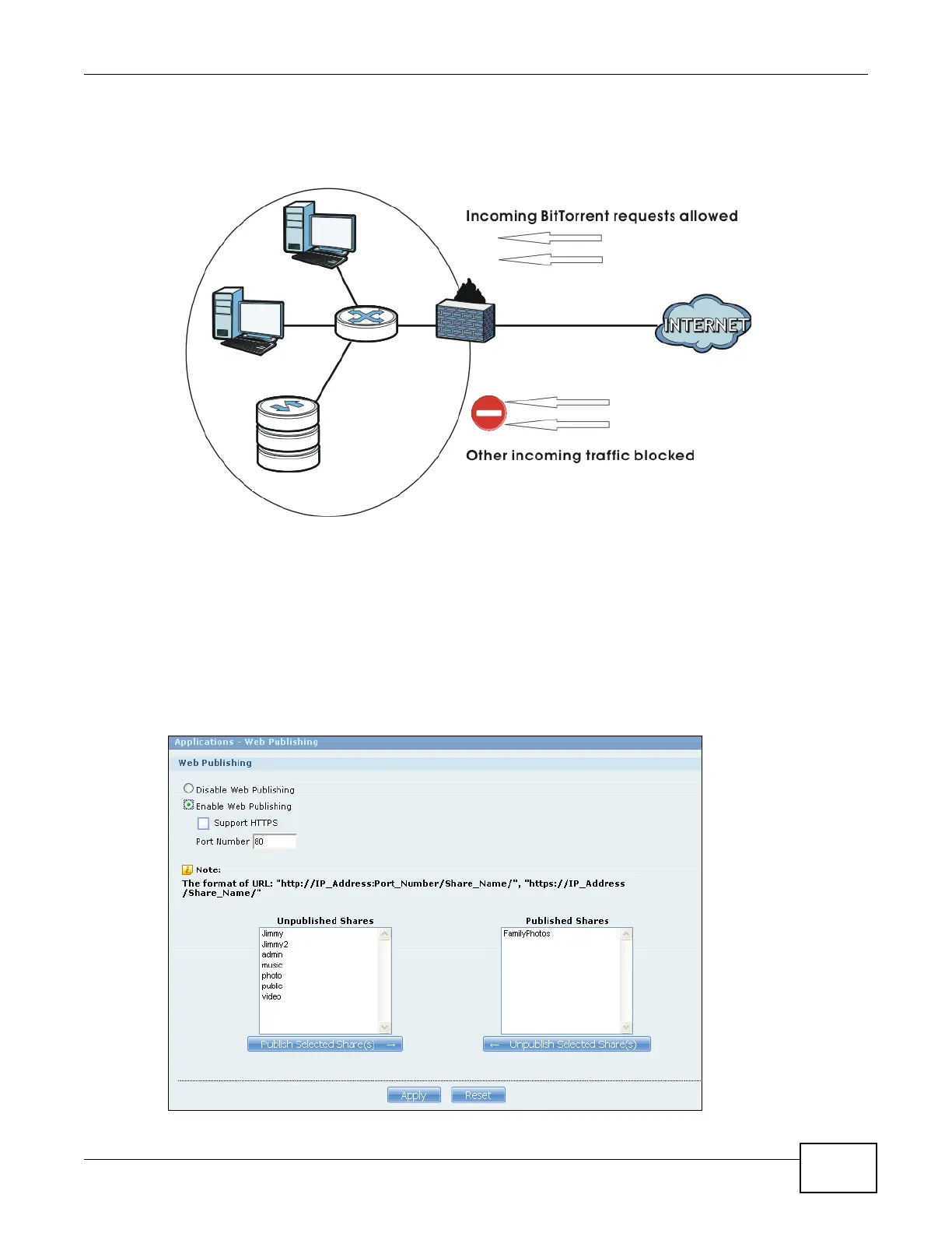 1 Click Applications > Web Publishing and configure the screen as shown (enable the web