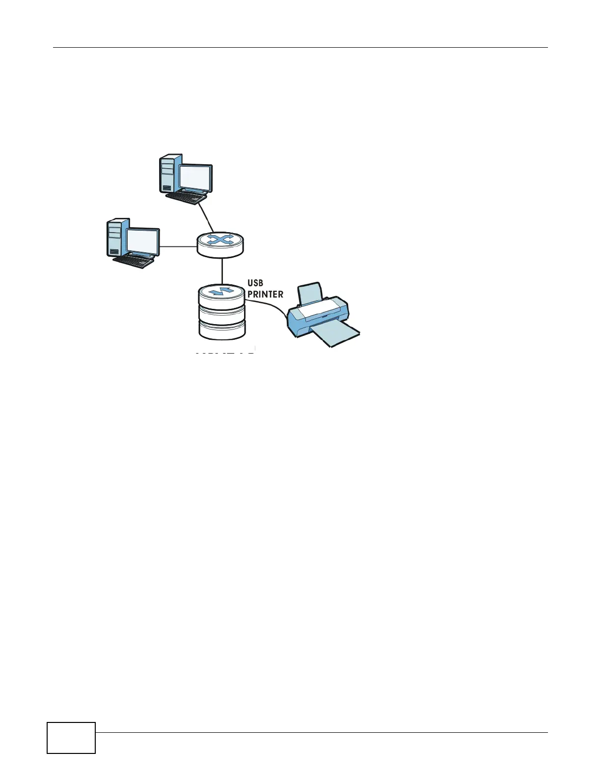 The NSA can act as a print server. A print server lets multiple computers share a printer. Connect a