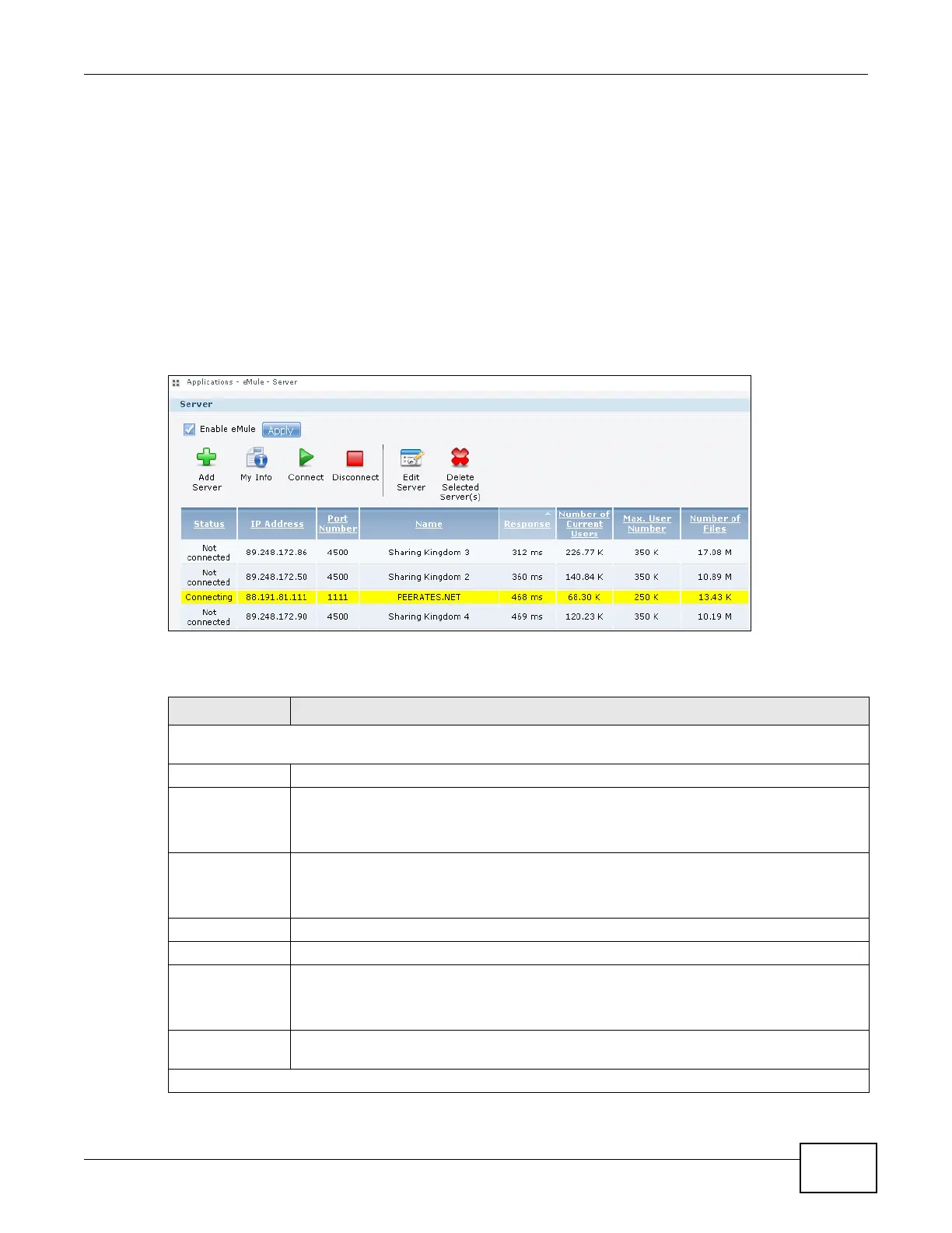 Table 58 Applications > eMule > Server
