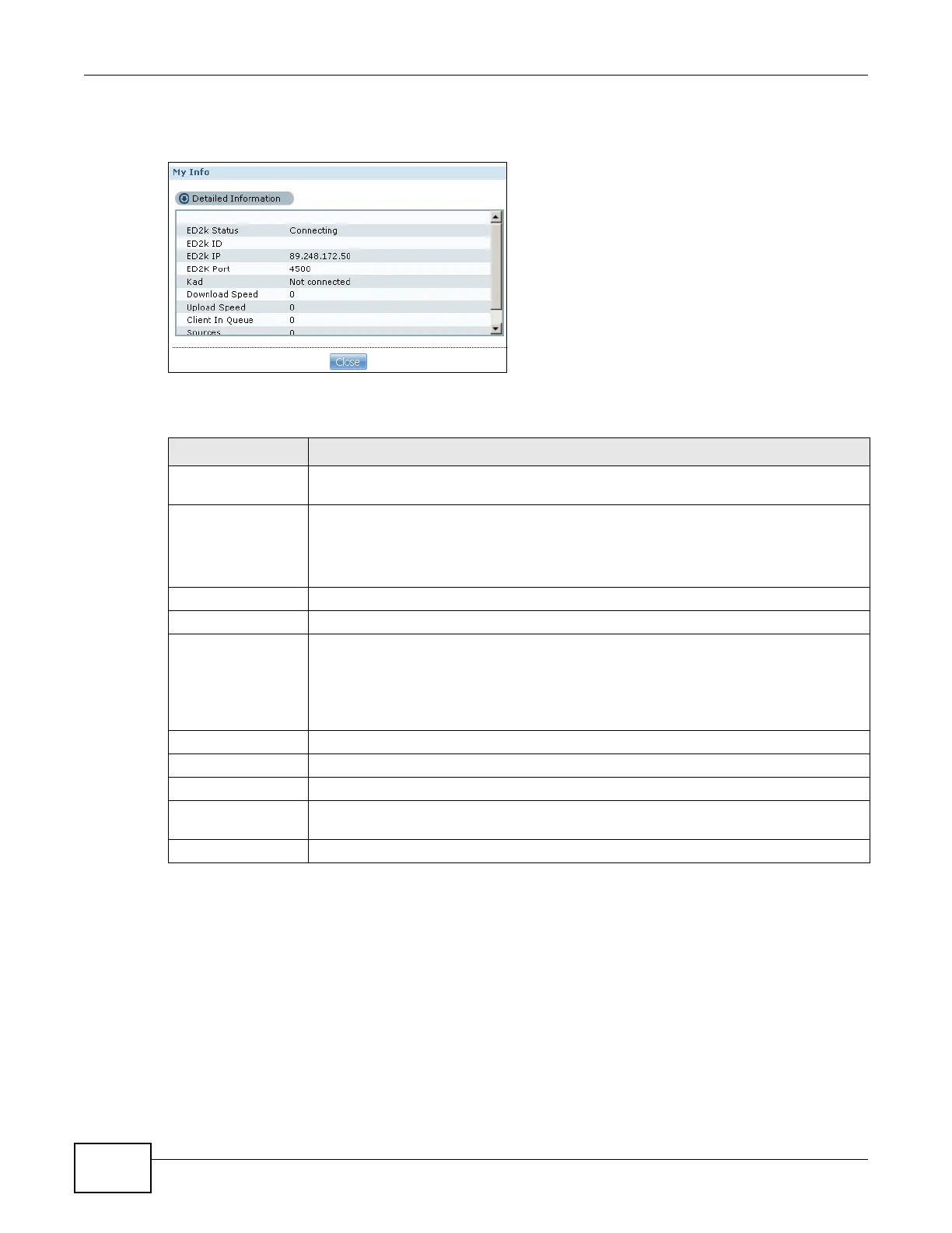 Click MyInfo in the Applications > eMule > Server screen to view the server details.