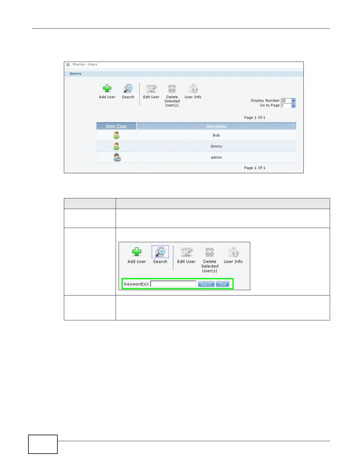 Edit User Select an account and click this to open a screen where you can edit the properties of