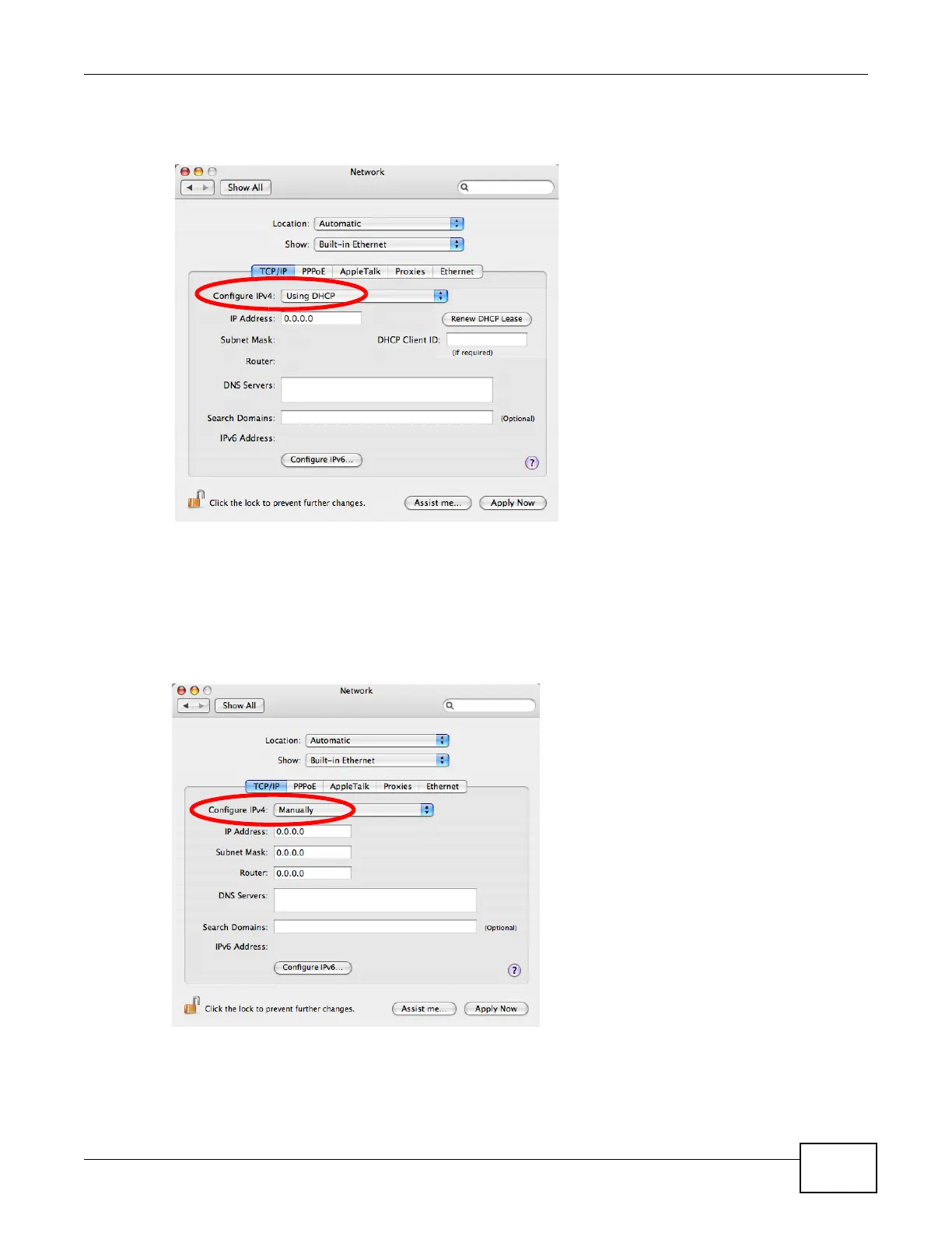 4 For dynamically assigned settings, select Using DHCP from the Configure IPv4 list in the TCP/IP