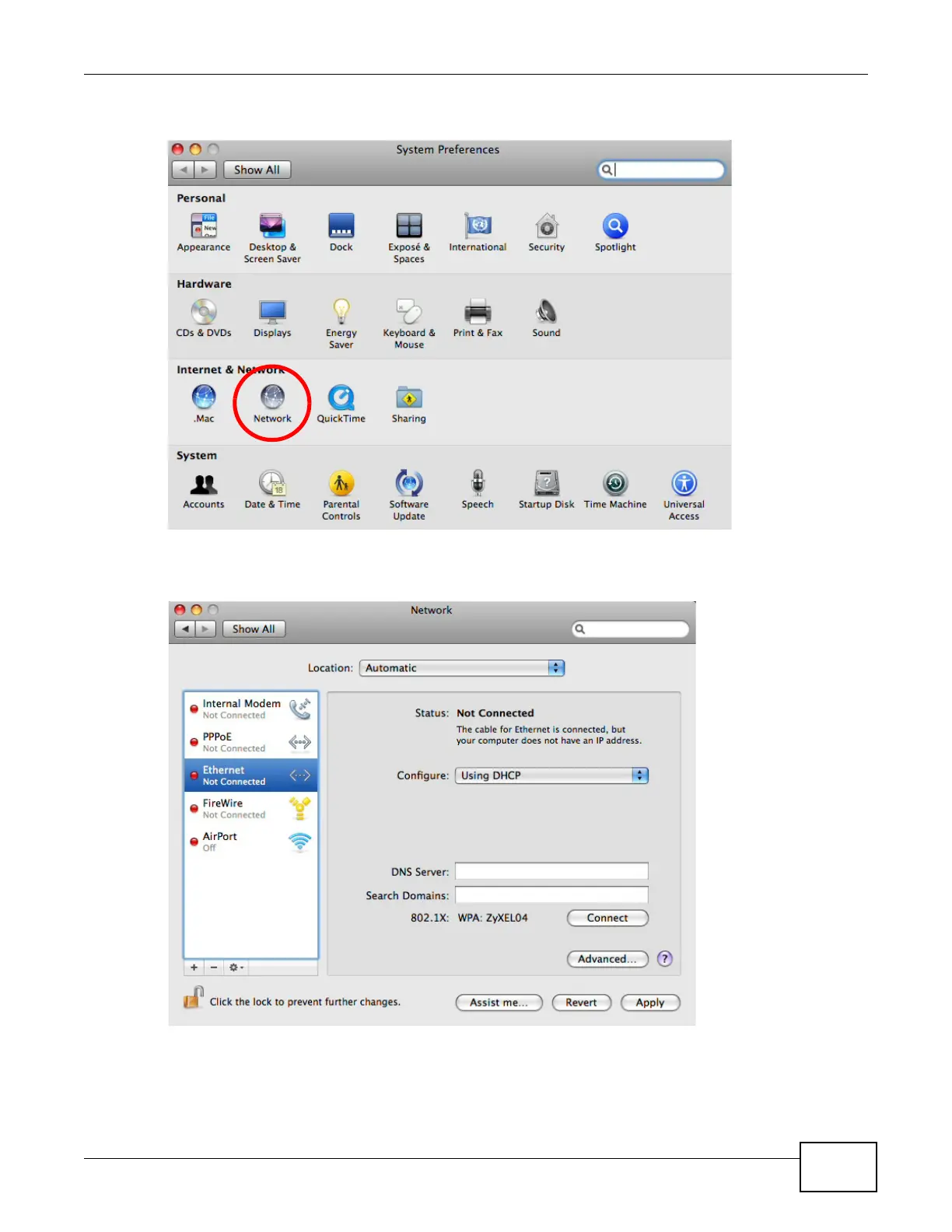 3 When the Network preferences pane opens, select Ethernet from the list of available connection