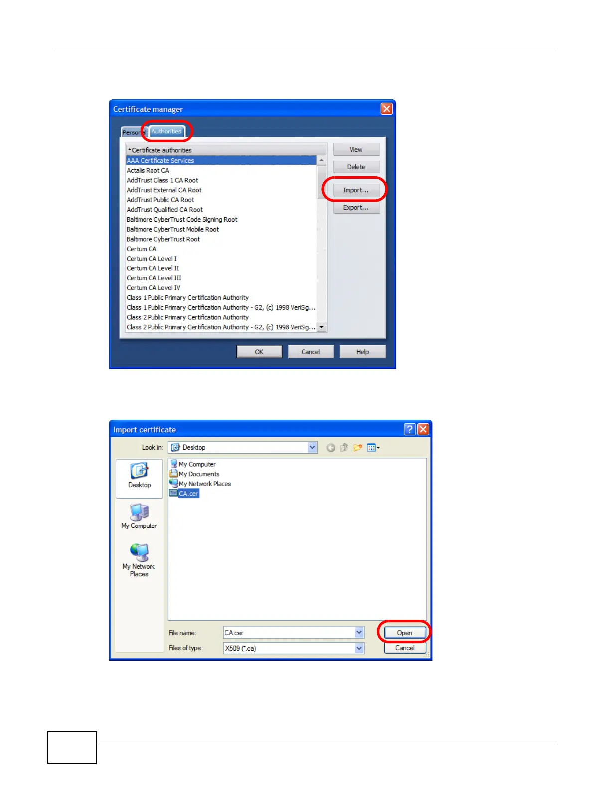Appendix D Importing Certificates
