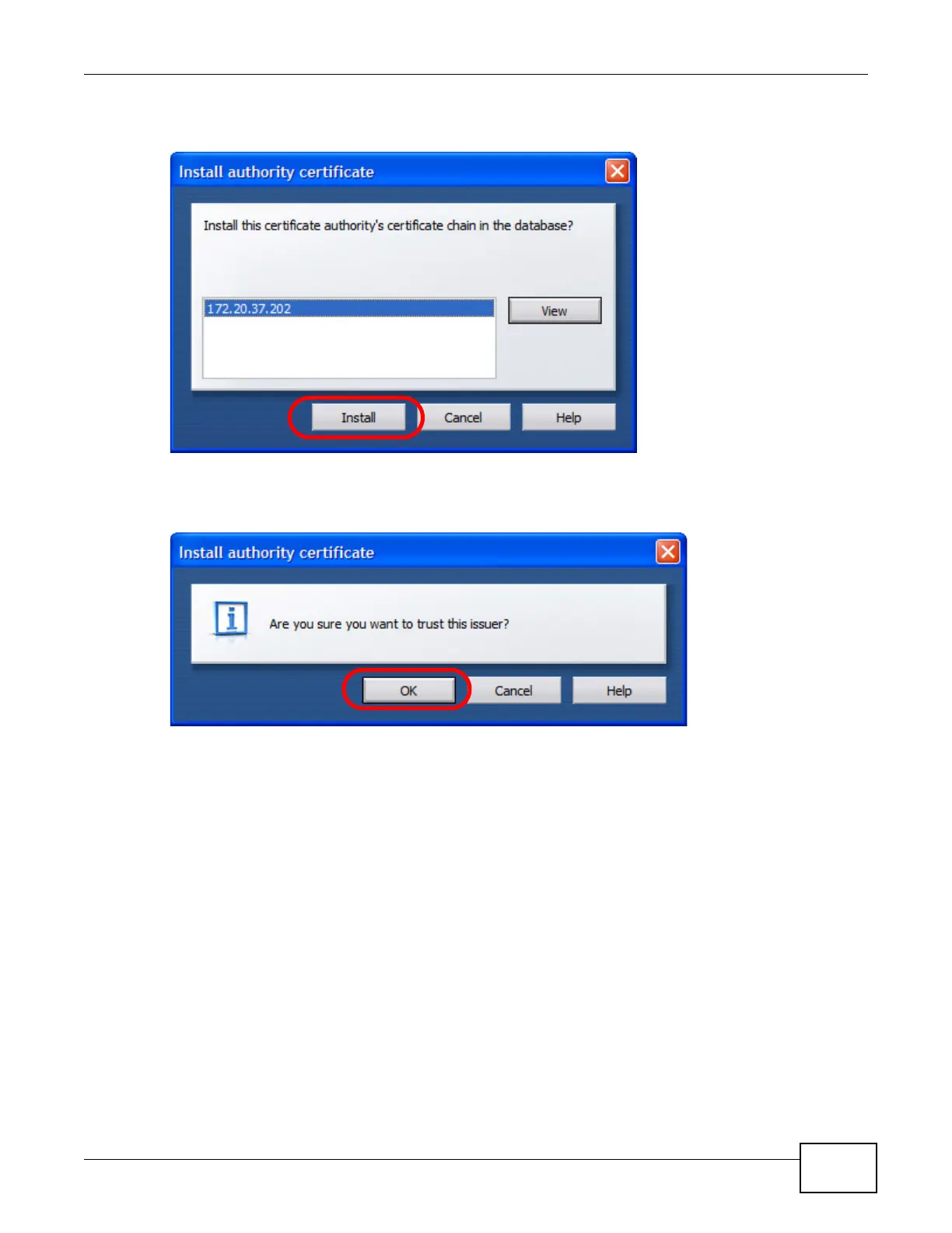 5 In the Install authority certificate dialog box, click Install.