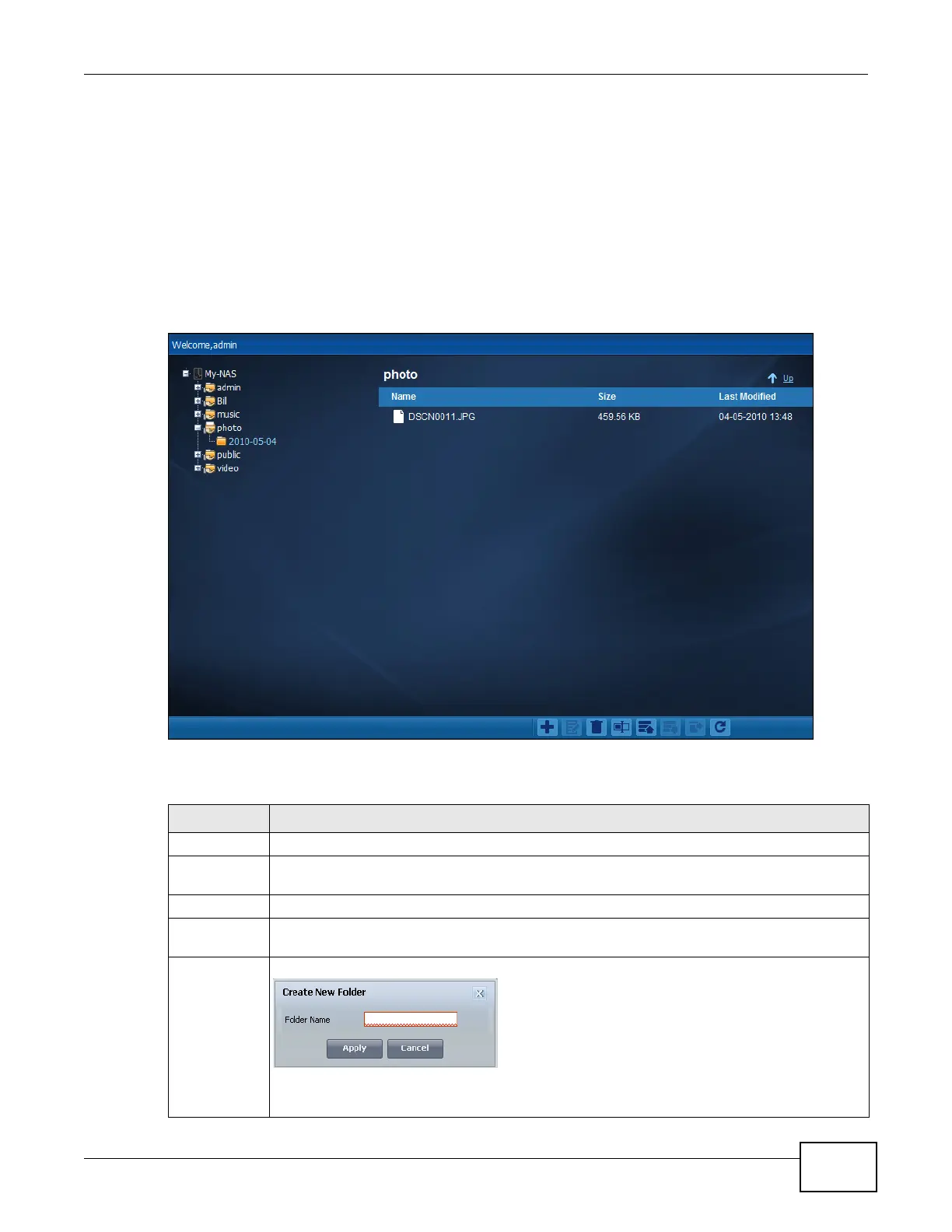 Up Click this to go to the next higher layer in the share’s folder tree.