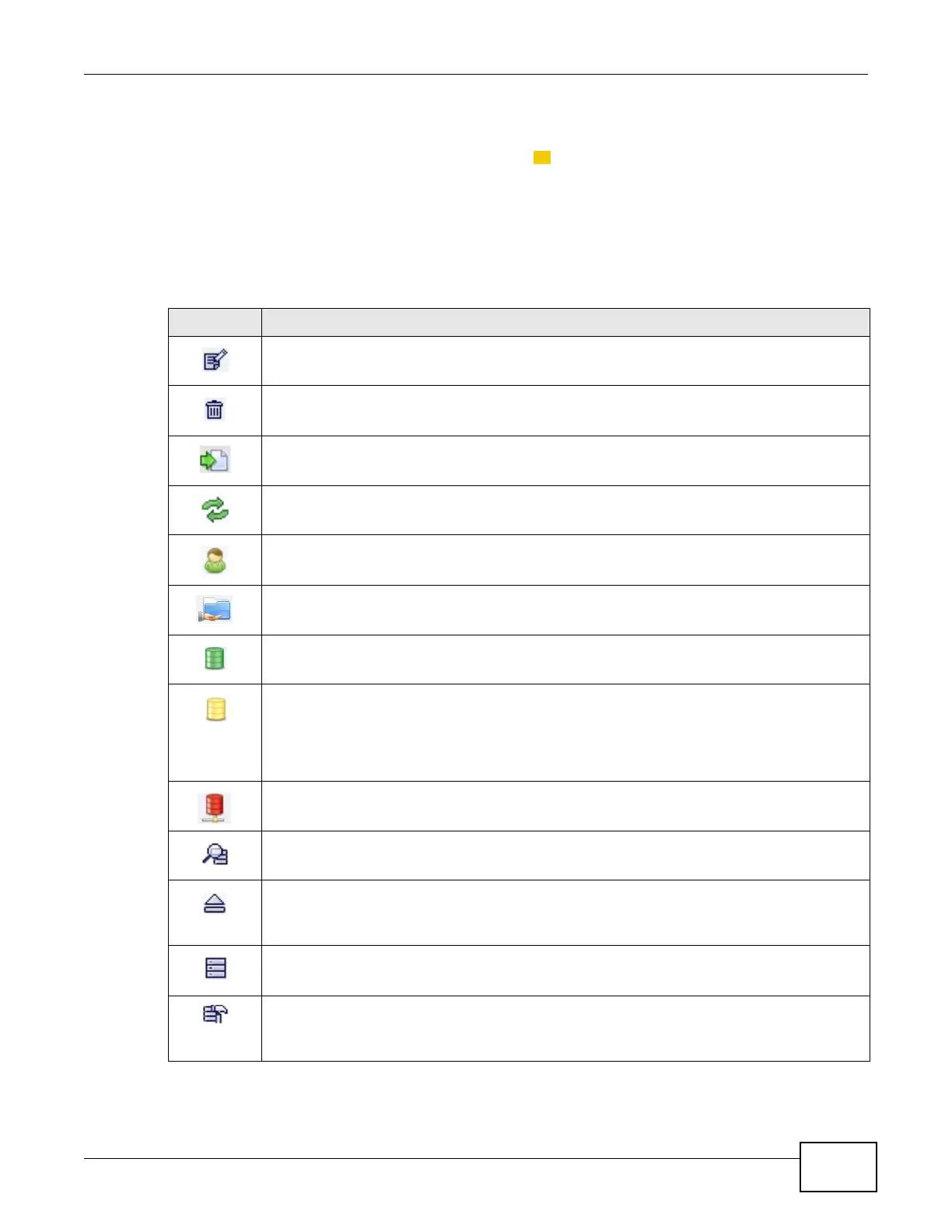 The following table explains some icons that appear in several configuration screens.
