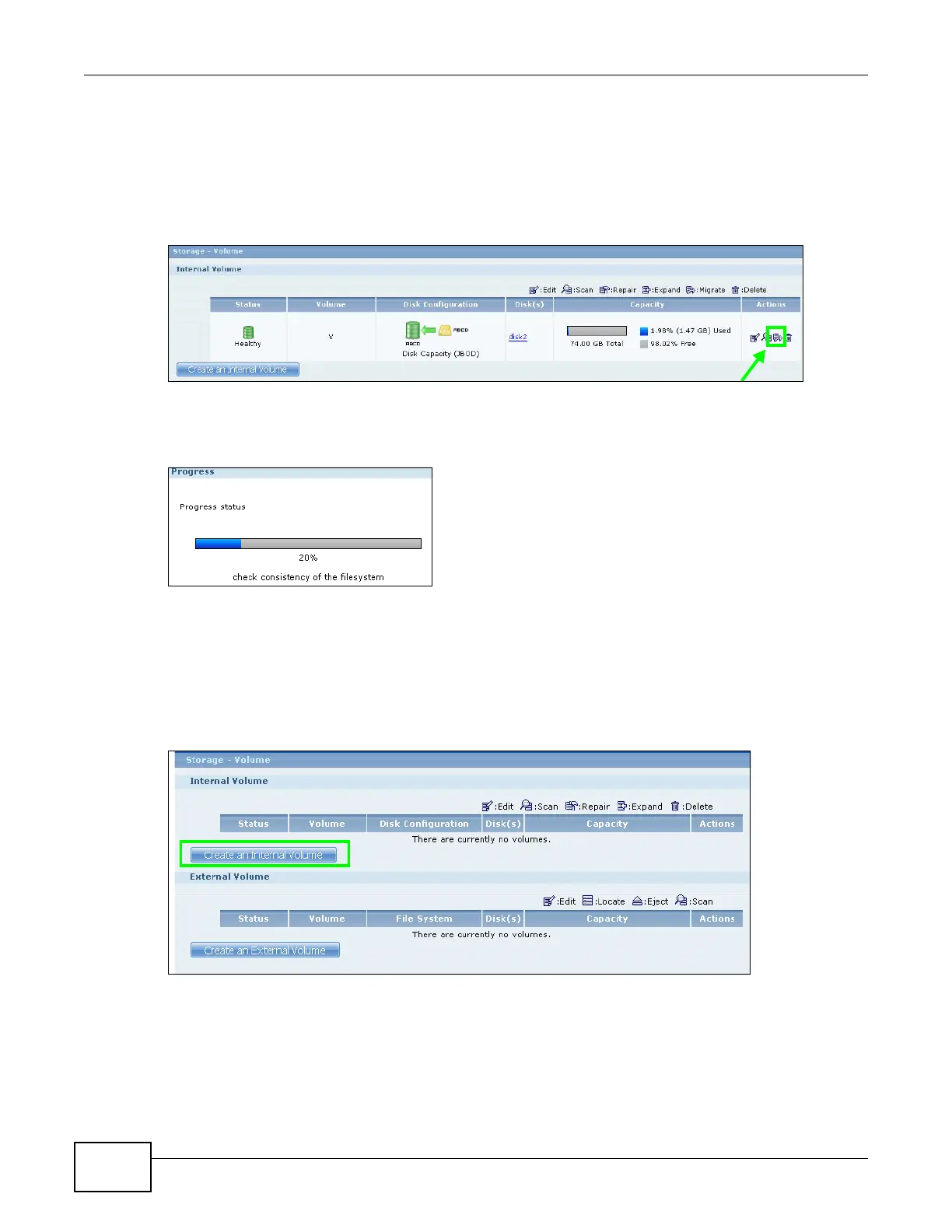 1 In the Storage > Volume screen, click Create an Internal Volume.