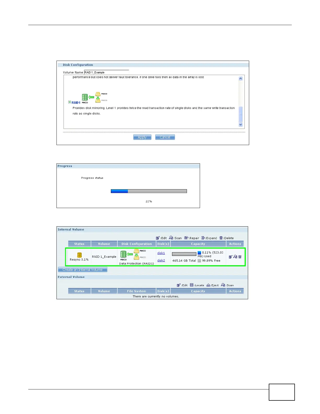 The NSA starts creating the volume and you can see the following progress bar. Wait for the RAID 1