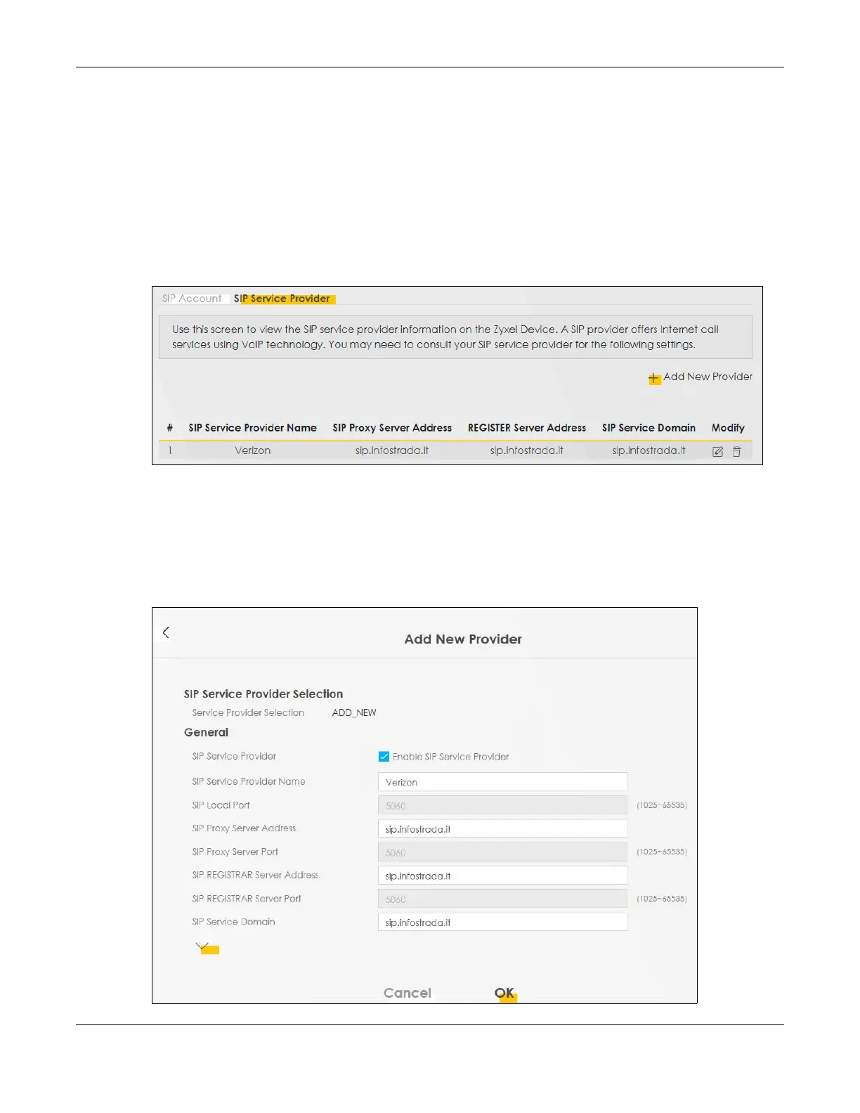 ZyXEL Communications PX3321-T1 - Adding a SIP Service Provider