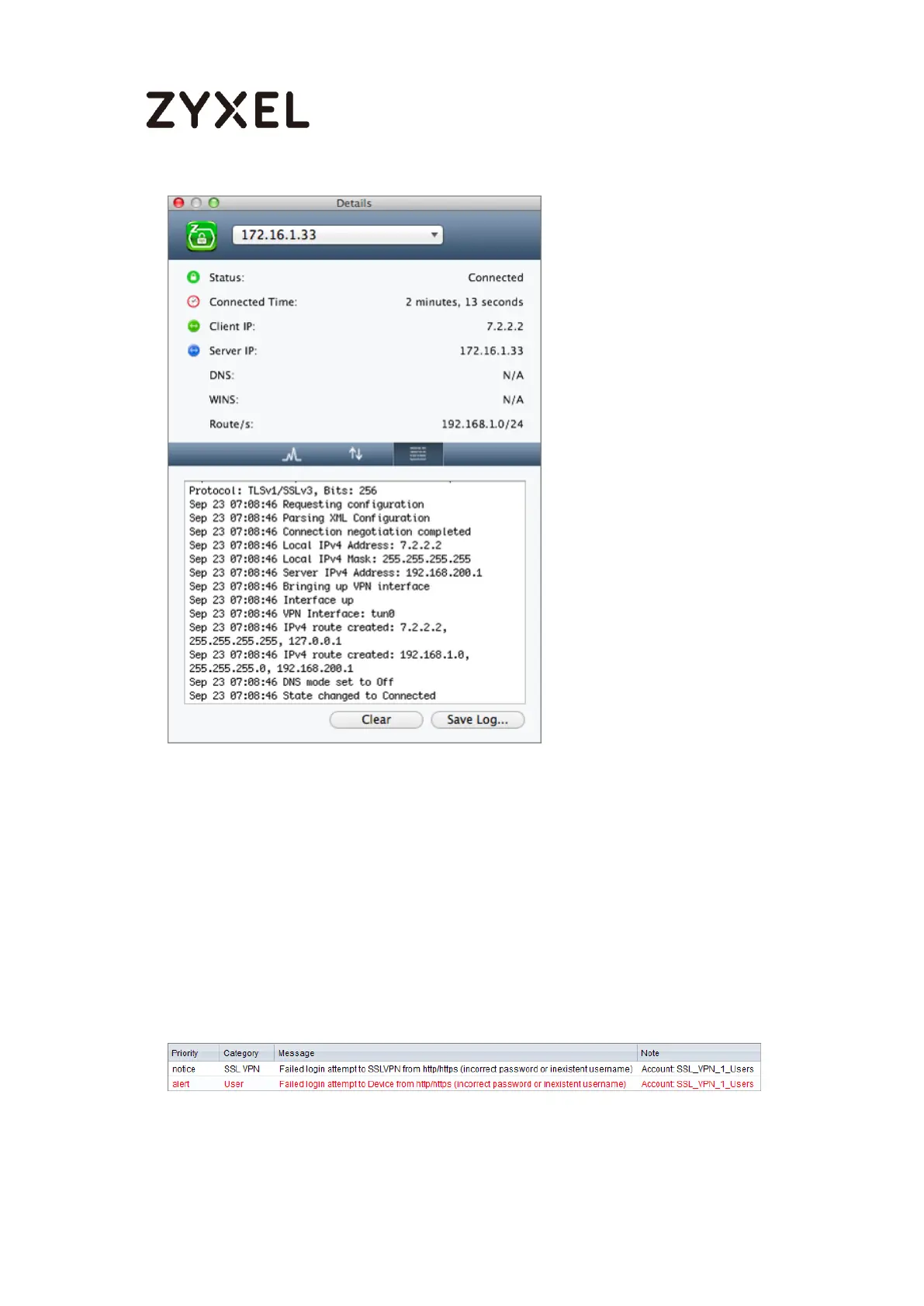 users must use the same Username and Password as configured in ZyWALL/USG to