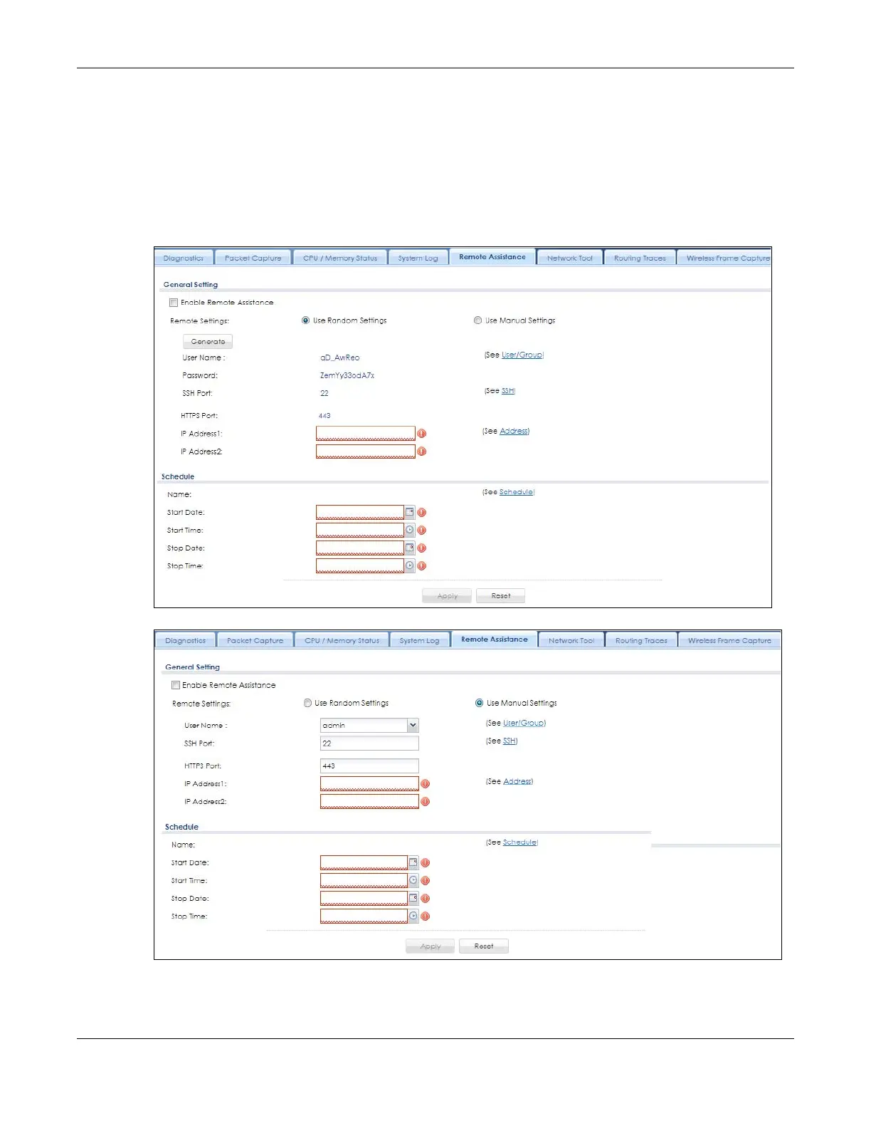 Figure 718 Maintenance > Diagnostics > Remote Assistance - Random