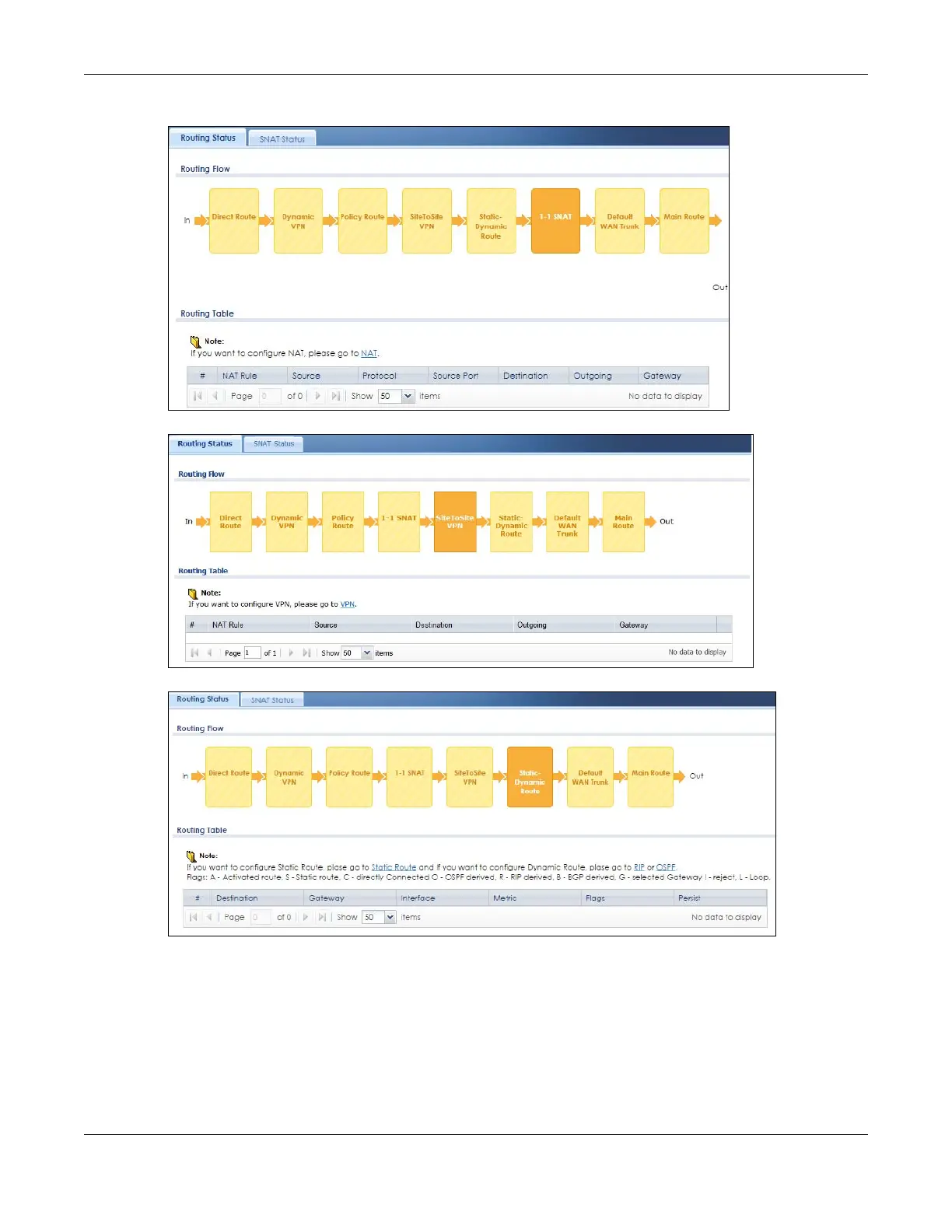 Figure 728 Maintenance > Packet Flow Explore > Routing Status (1-1 SNAT)