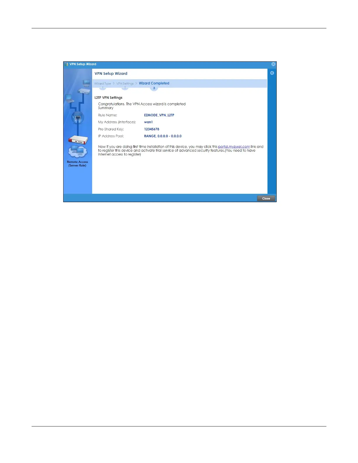4.8.4 VPN Settings for L2TP VPN Setting Wizard Completed