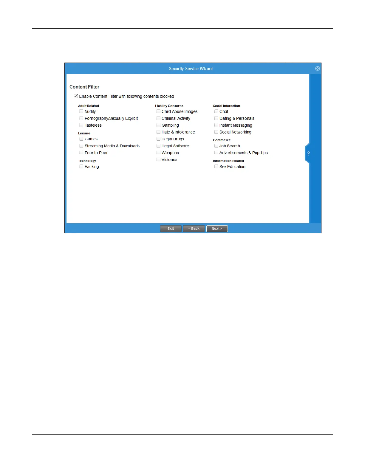 4.11.1 Security Service Wizard 2 - Content Filter Categories