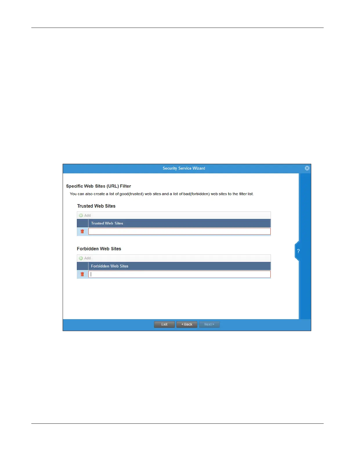 Figure 111 Security Wizard 3 - Trusted and Forbidden Websites