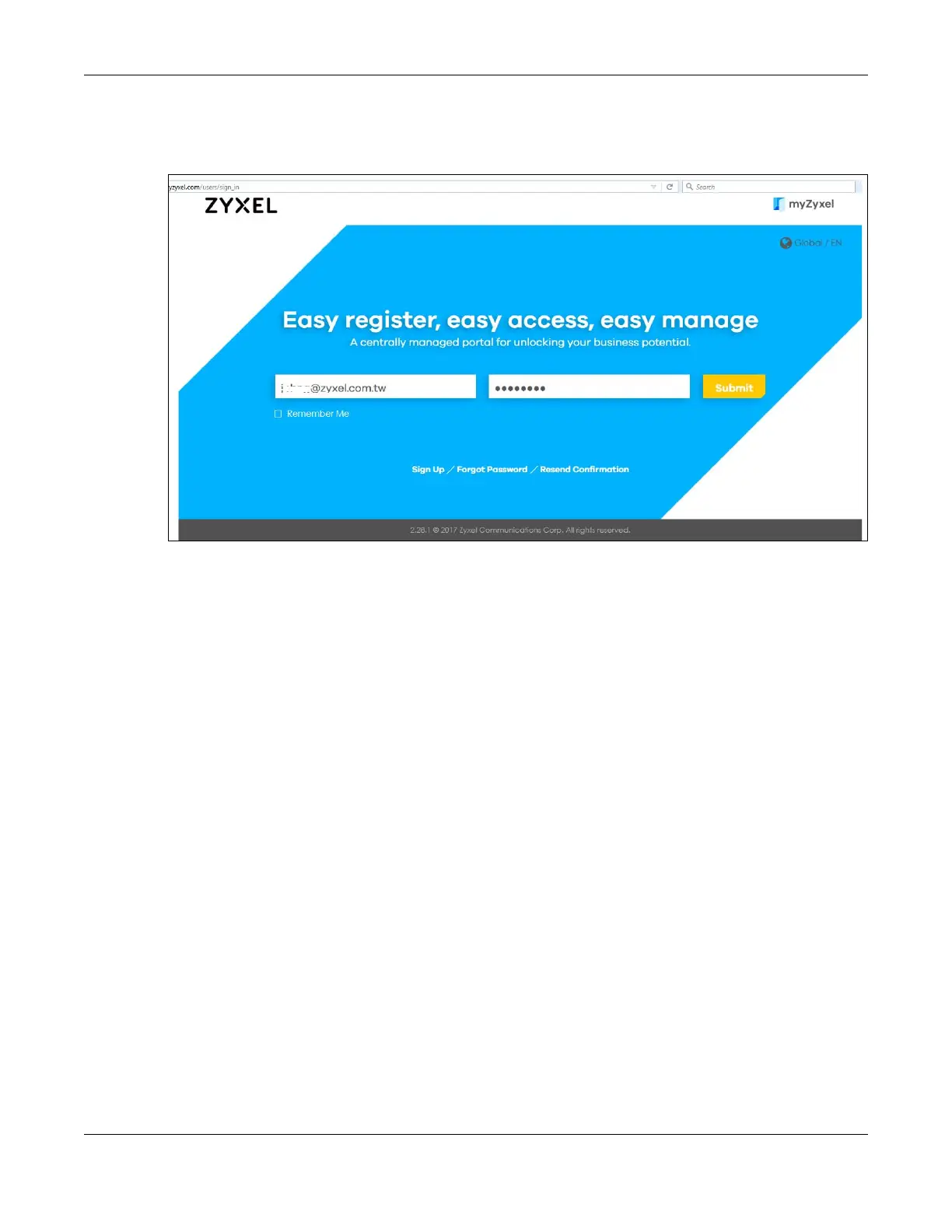 myZyxel is Zyxel’s online services center where you can register your Zyxel Device and manage