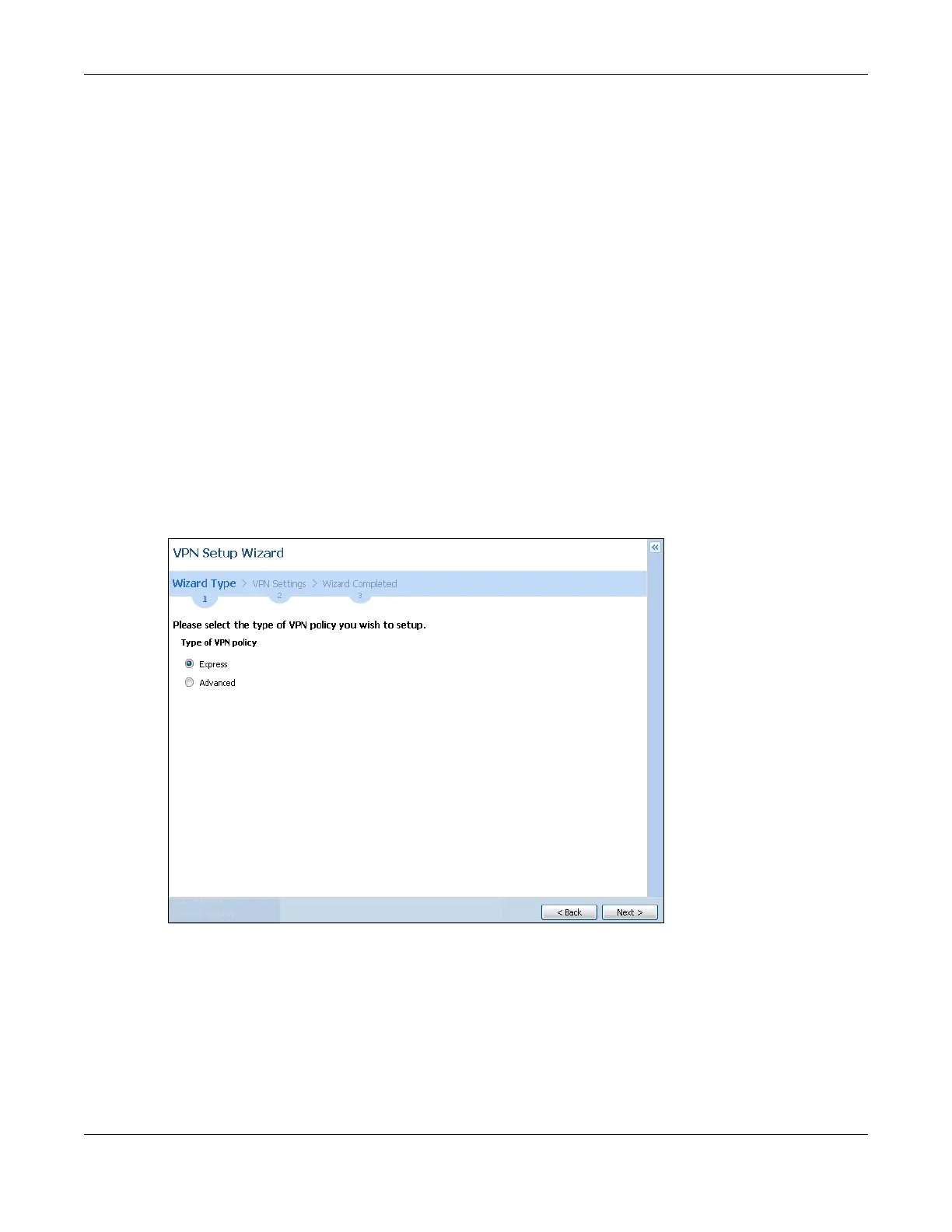 Choose Express to create a VPN rule with the default phase 1 and phase 2 settings and to use a pre-