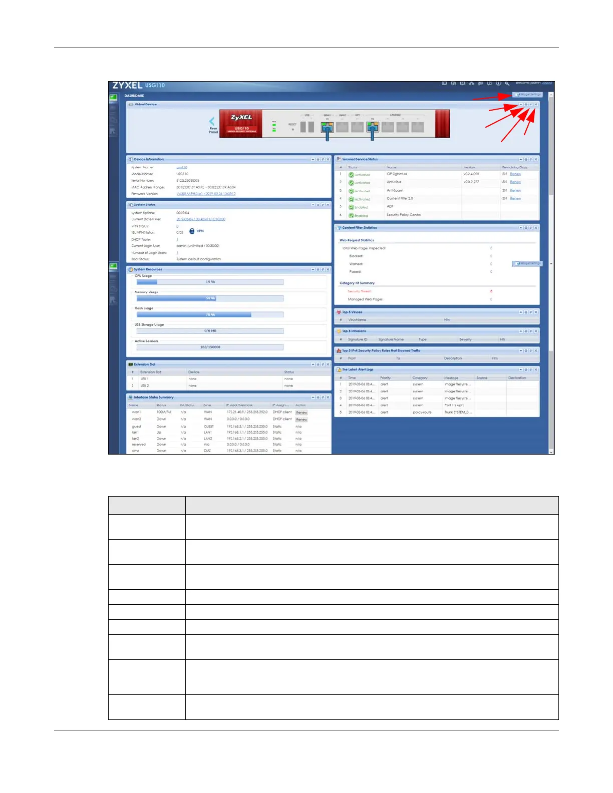 Front Panel Click this to view details about the status of the Zyxel Device’s front panel LEDs and