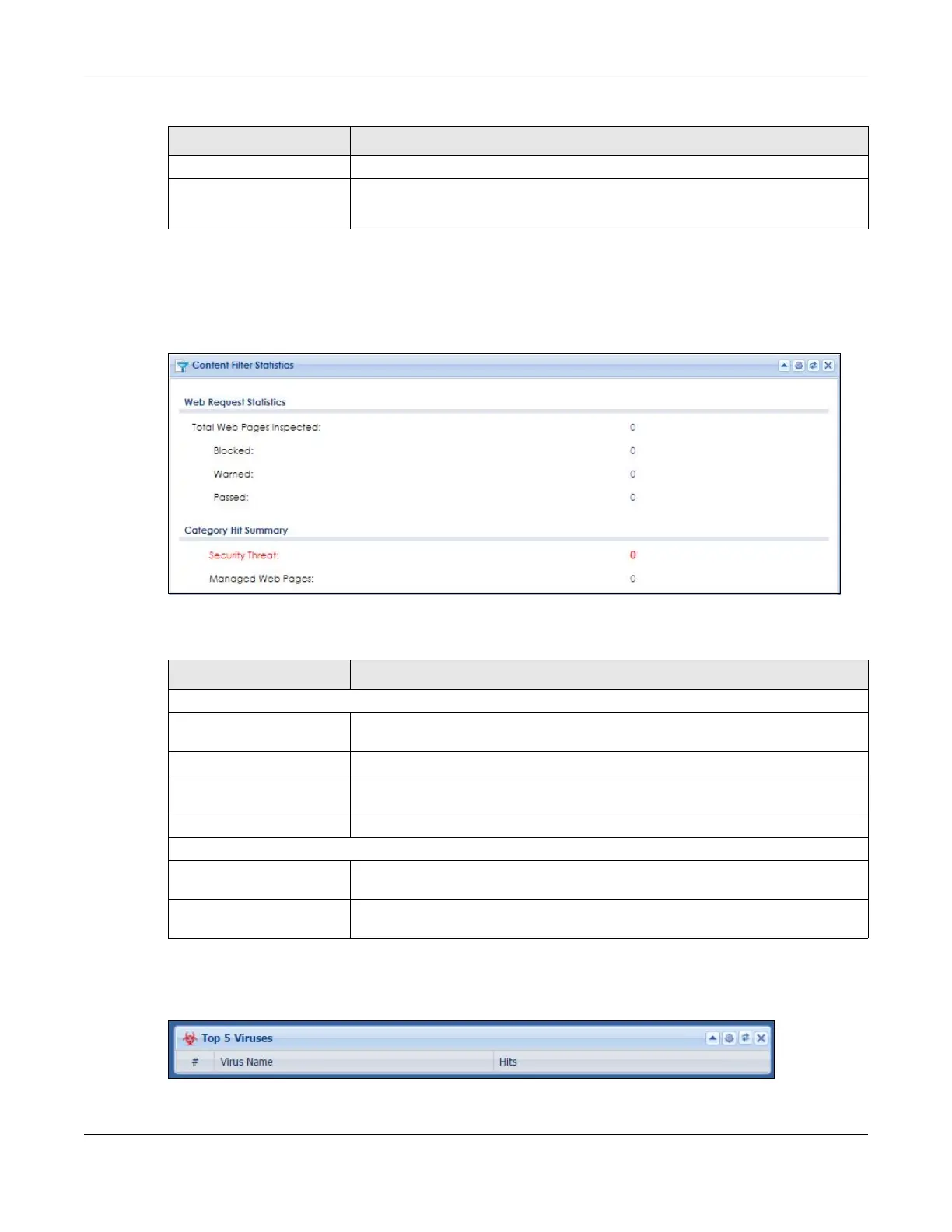 Blocked This is the number of web pages that the Zyxel Device blocked access.