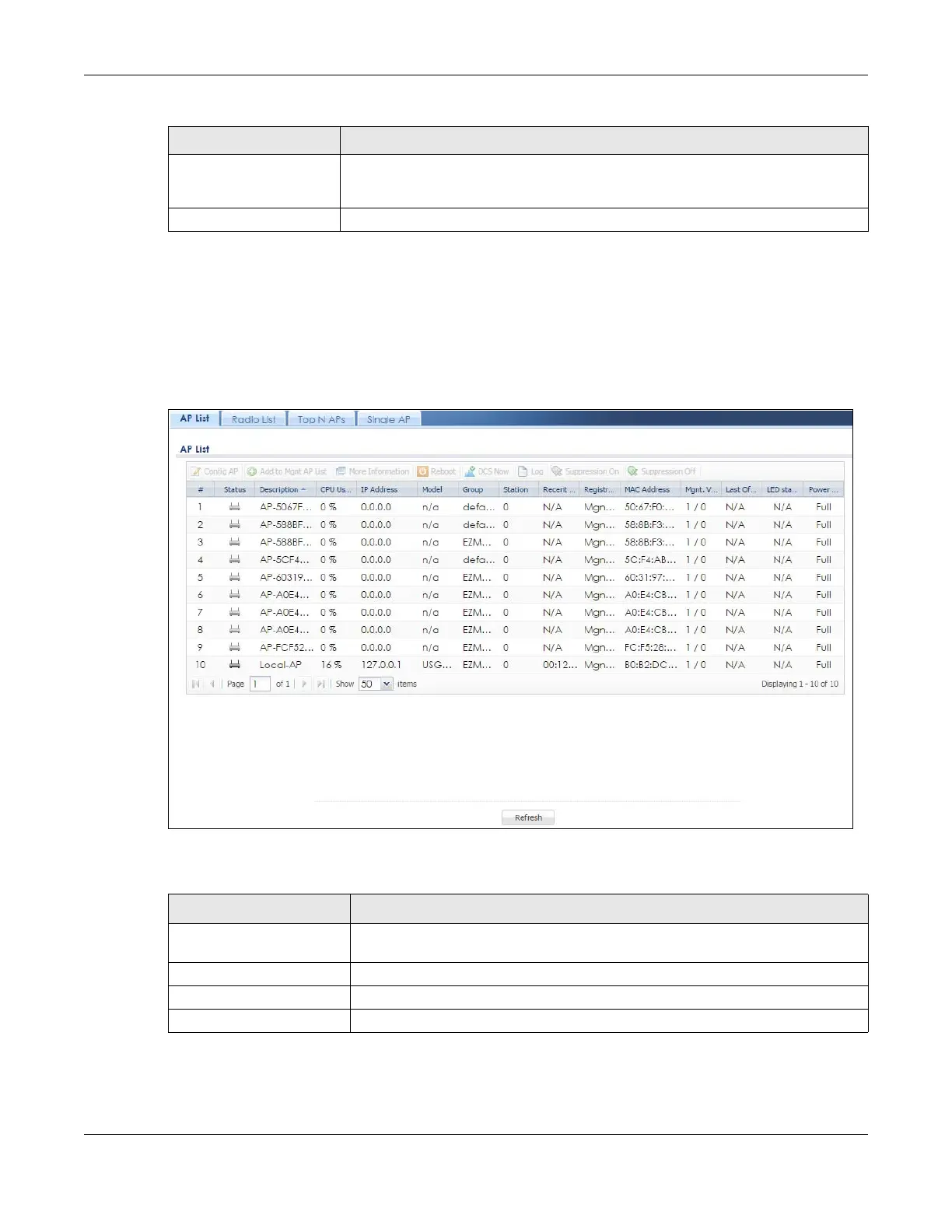 Table 54 Monitor > Wireless > AP Information > AP List