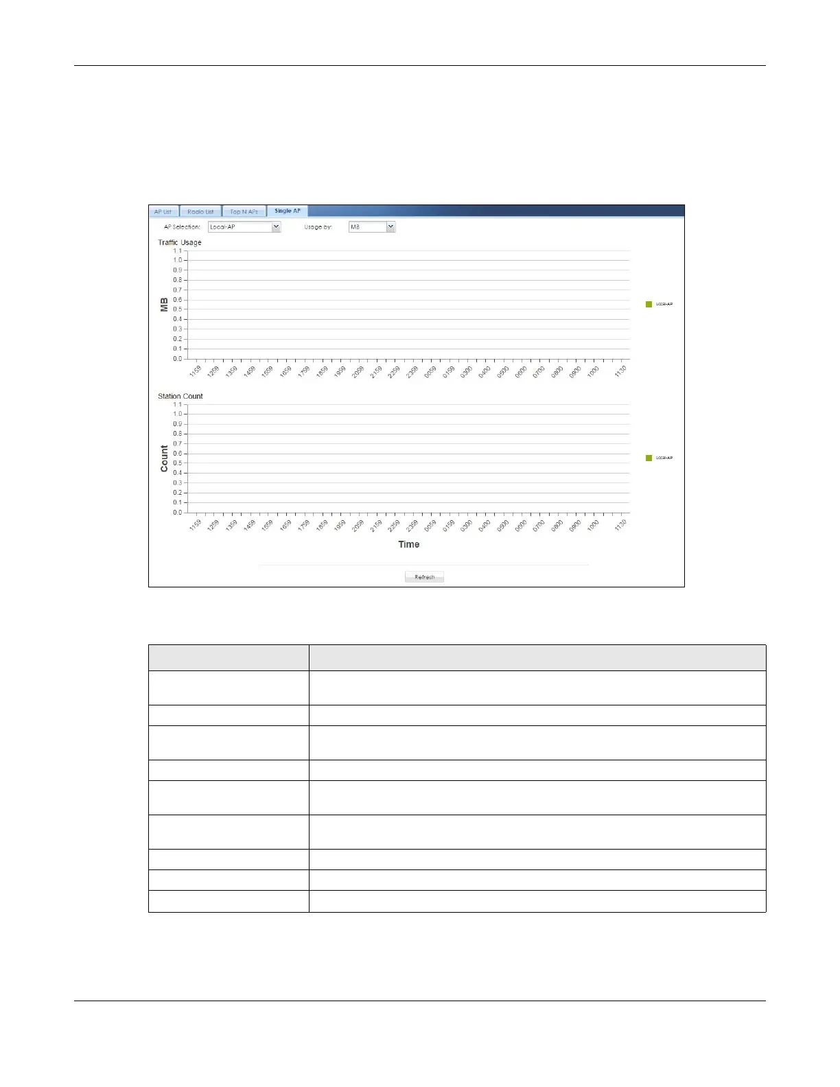 AP Selection Select a managed AP from the drop-down list box to view its wireless traffic usage