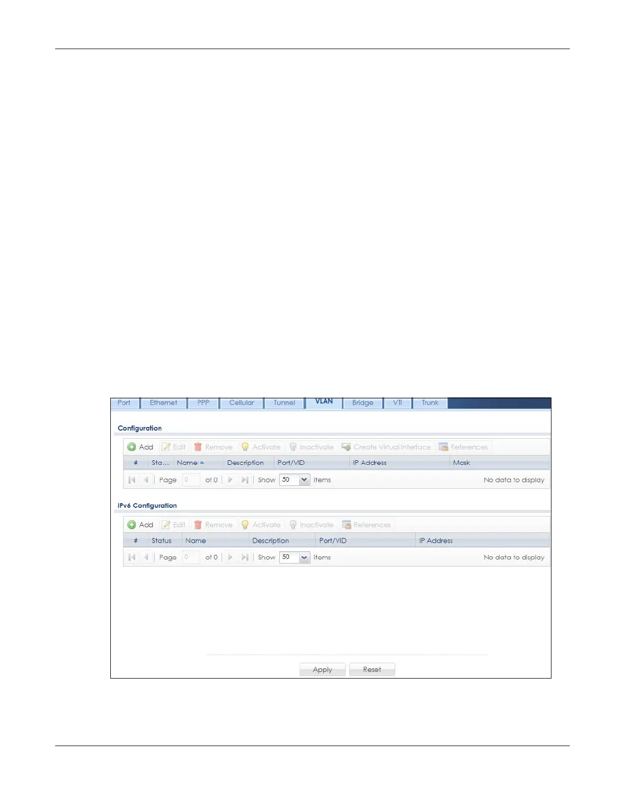enabled IPv6 in the Configuration > System > IPv6 screen, you can also configure VLAN interfaces used