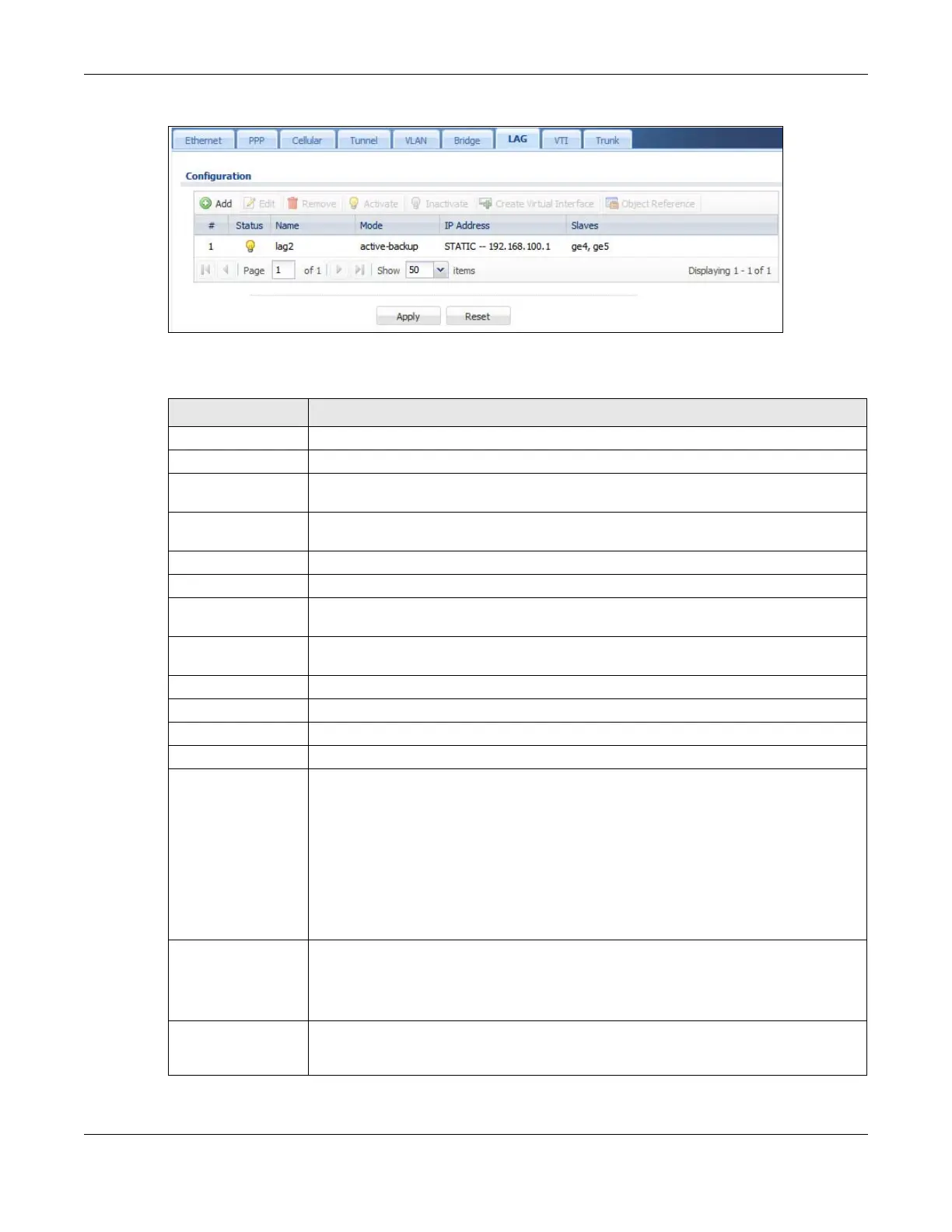 IP Address This field displays the current IP address of the LAG interface. If the IP address is 0.0.0.0, the