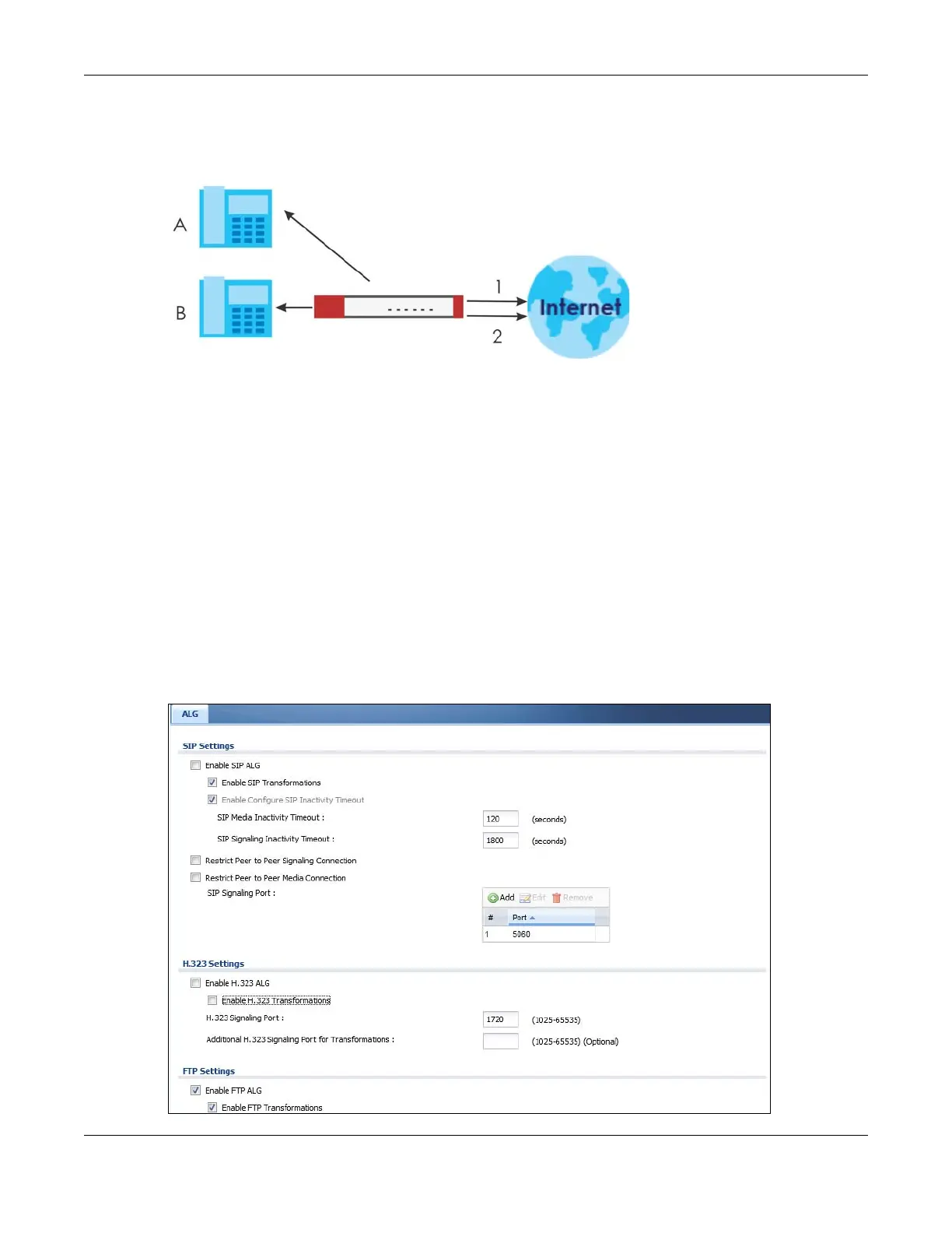 Note: If the Zyxel Device provides an ALG for a service, you must enable the ALG in order to