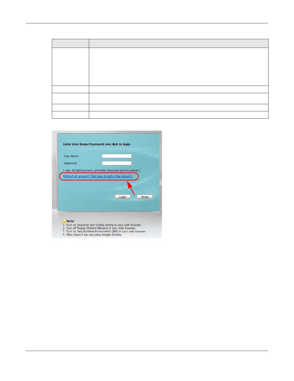 The following figure shows an example login screen with a link to create a free guest account.