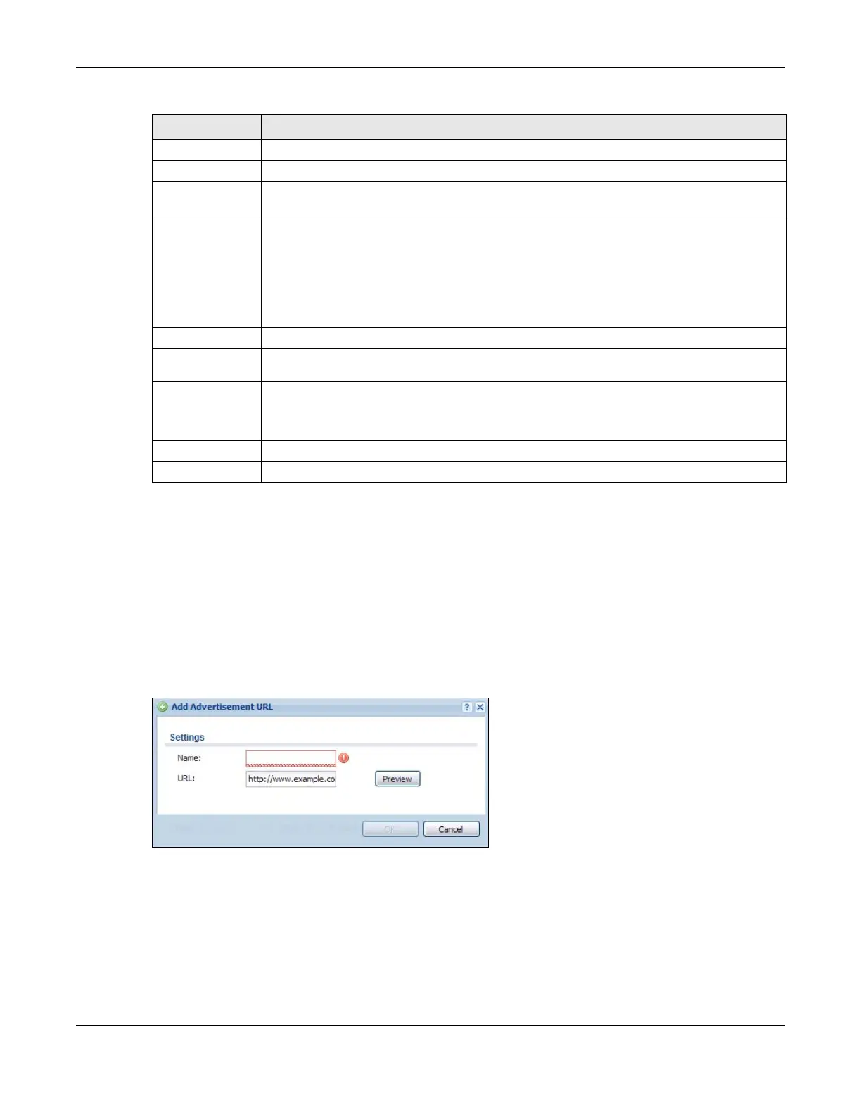 Note: You can create up to 20 advertisement URL entries. The Zyxel Device randomly picks