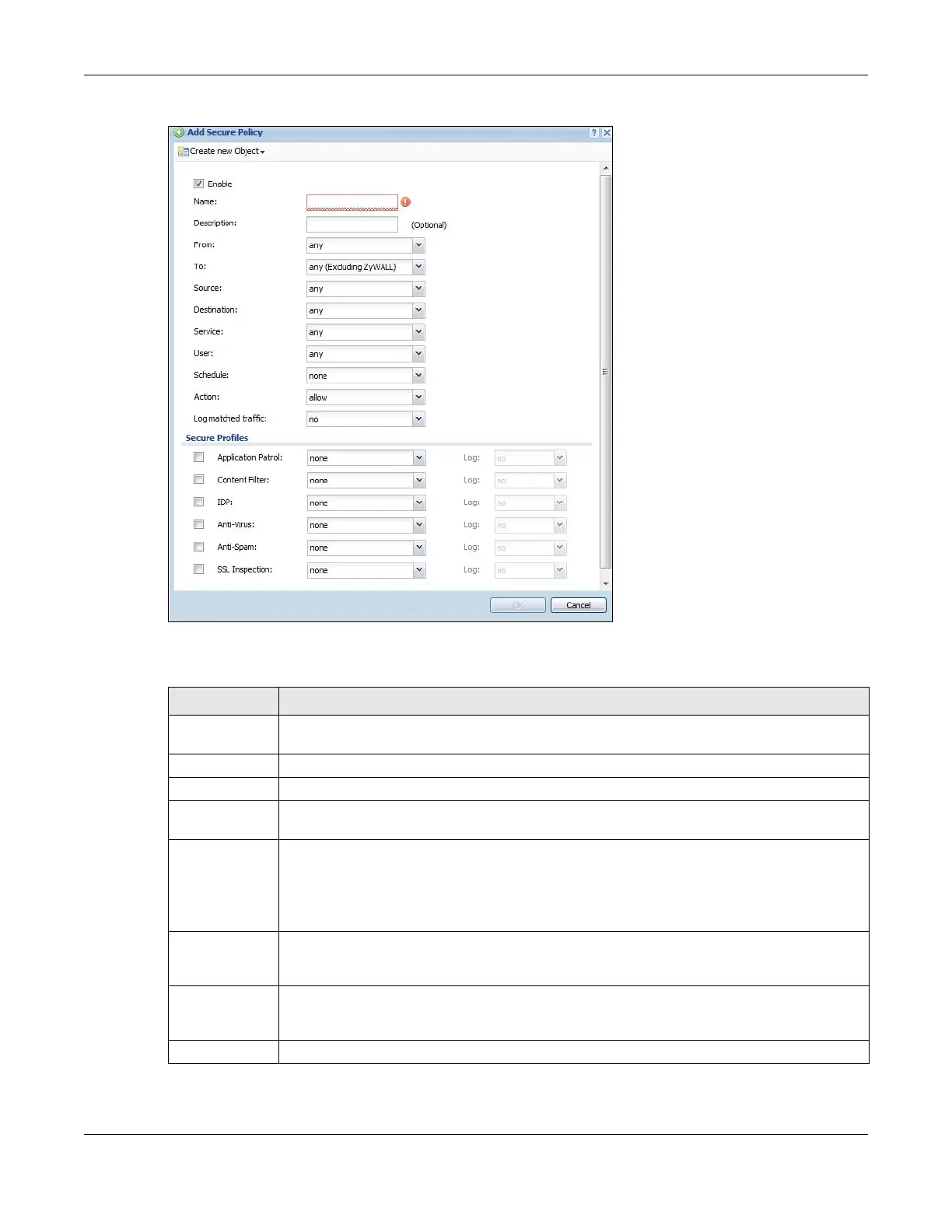 Table 207 Configuration > Security Policy > Policy Control > Add