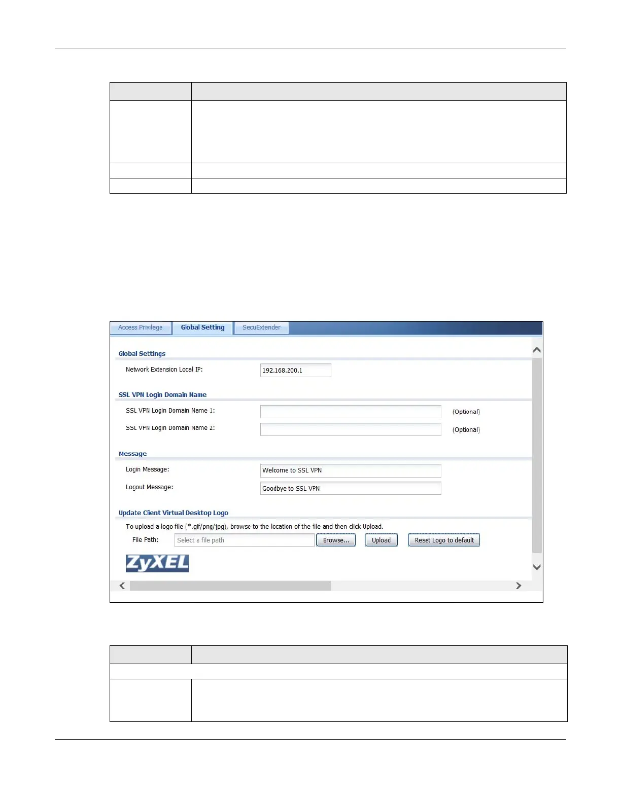Click VPN > SSL VPN and click the Global Setting tab to display the following screen. Use this screen to